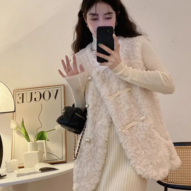 10個セット シープスキンベスト レディース 冬用スリム効果 韓国風小柄体型用ベスト 毛皮一体カーディガン