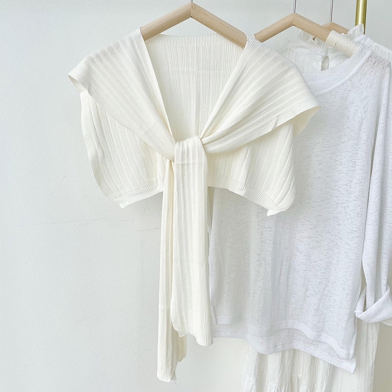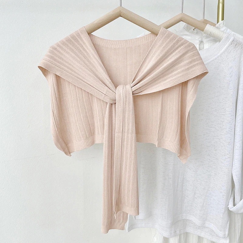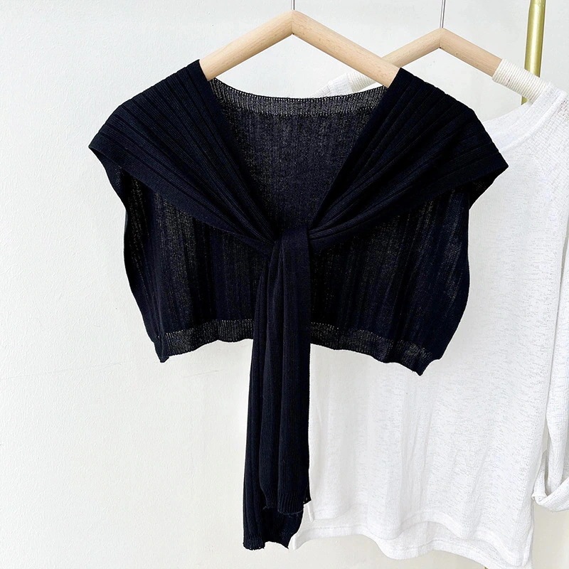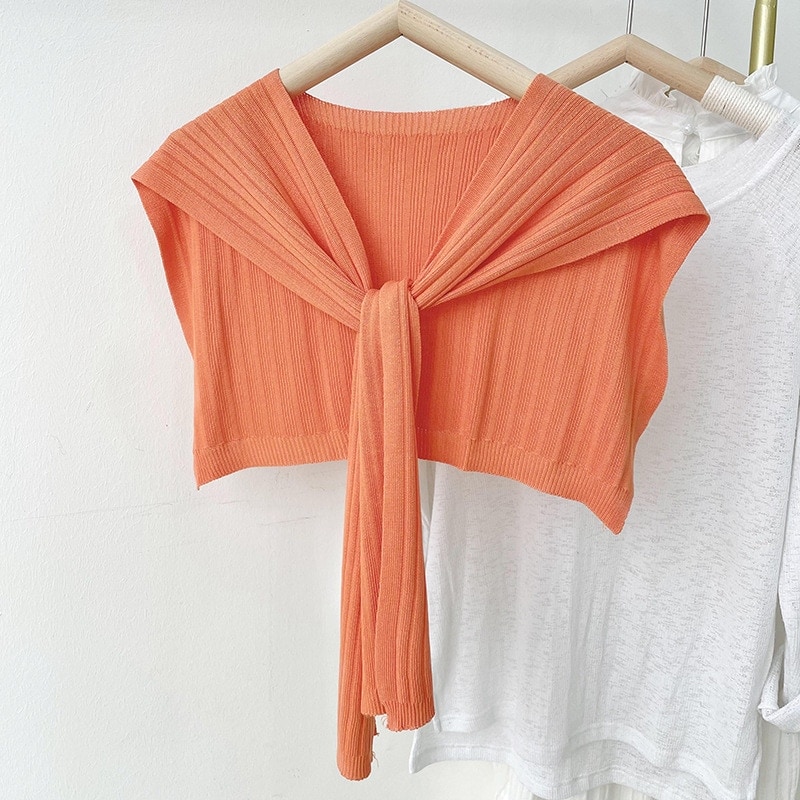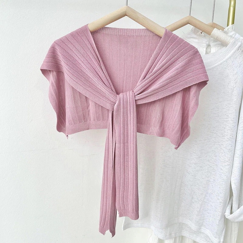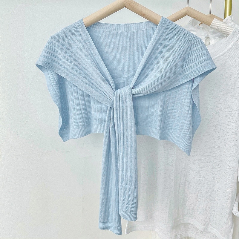 春夏用アウターショール アイスシルク薄手ショール 韓国風UVカット 彼女用ニット結びスカーフ レディースショール
