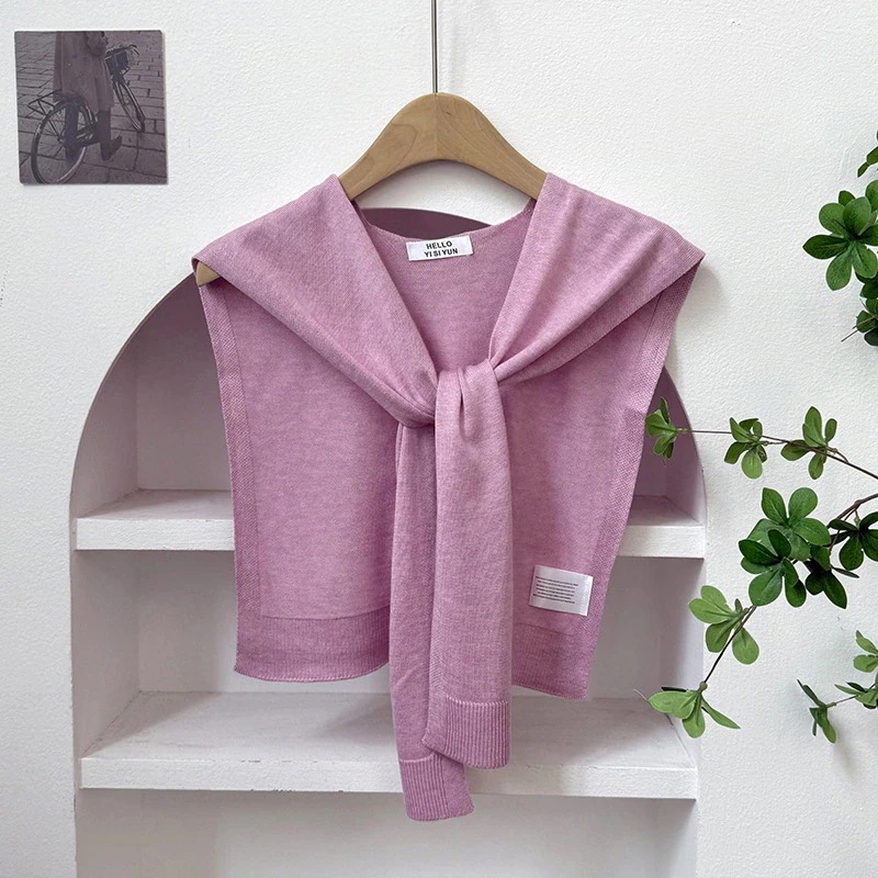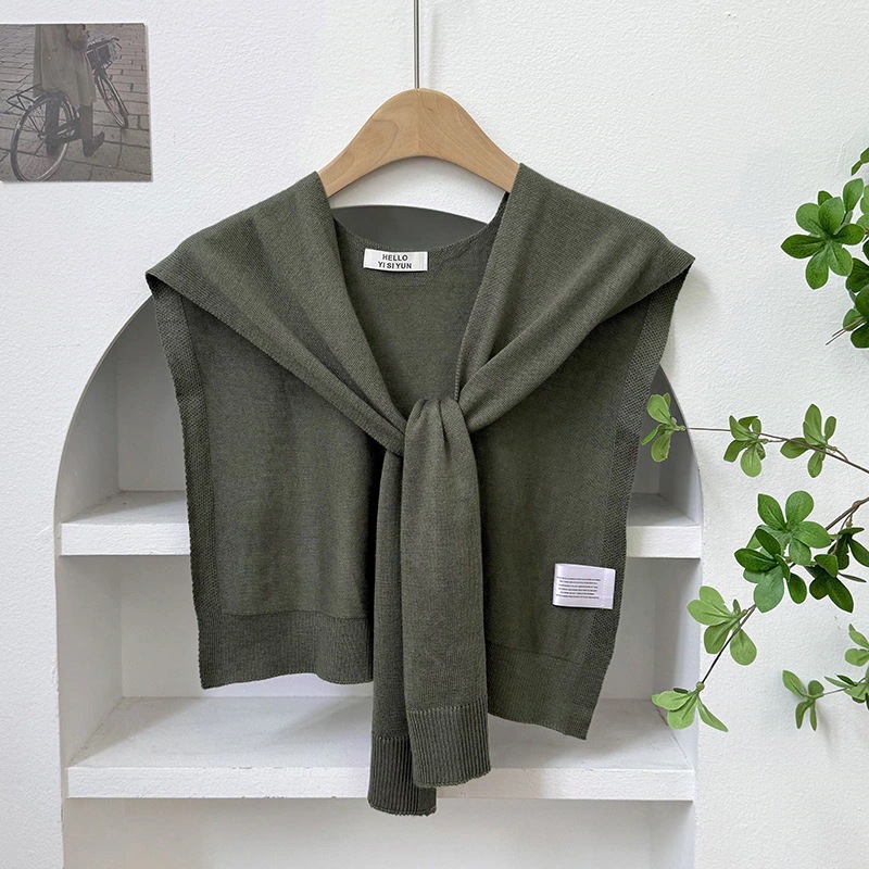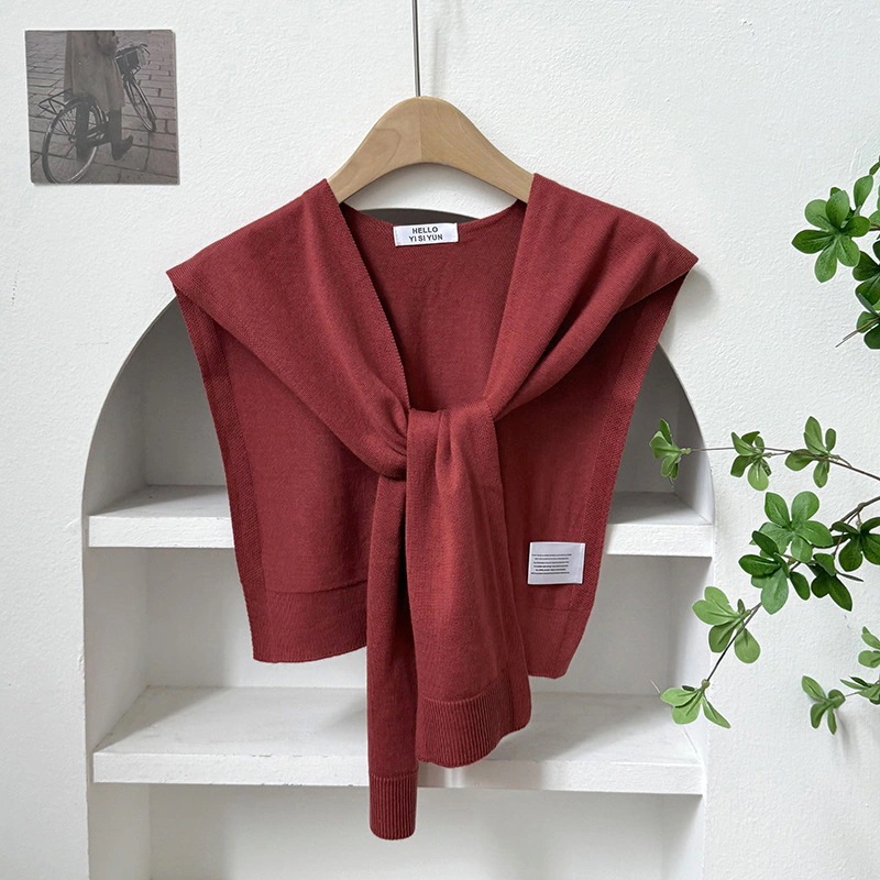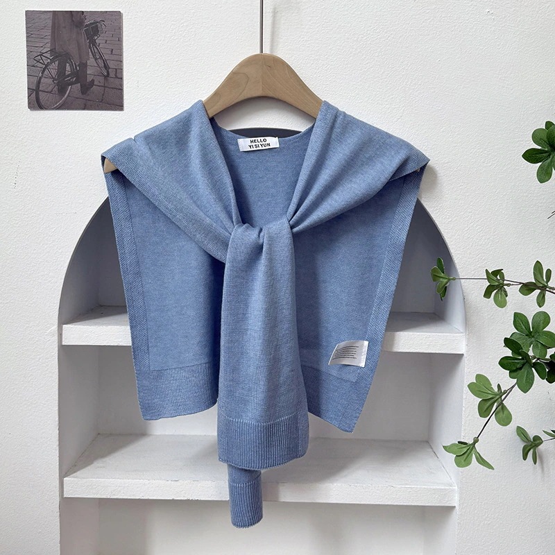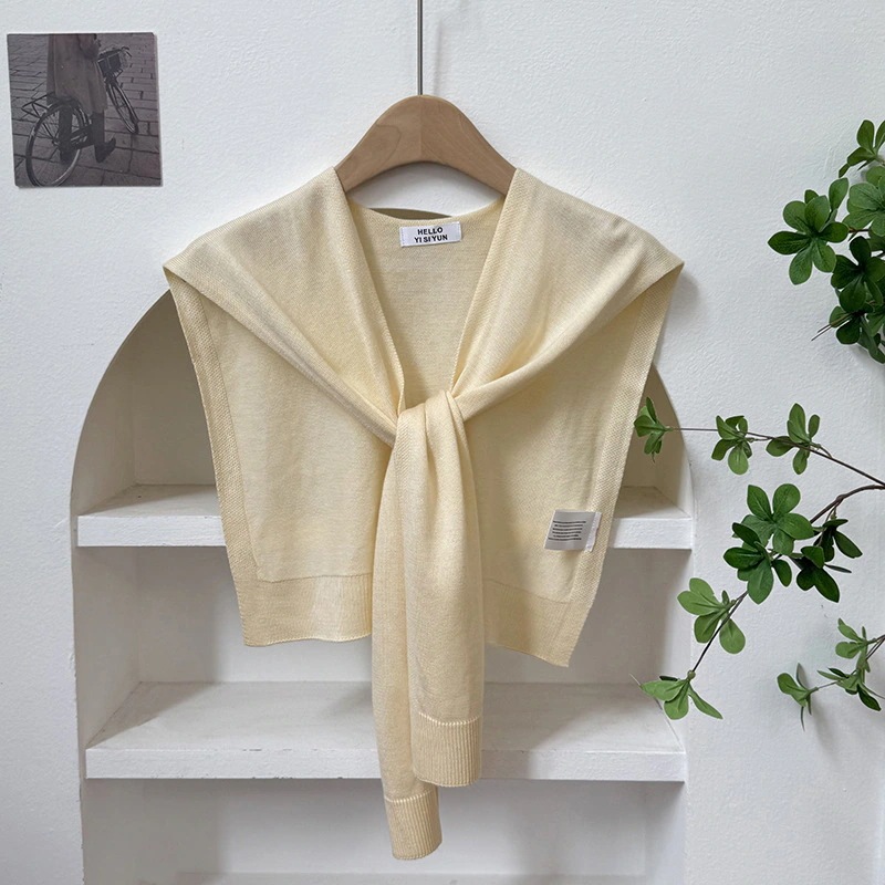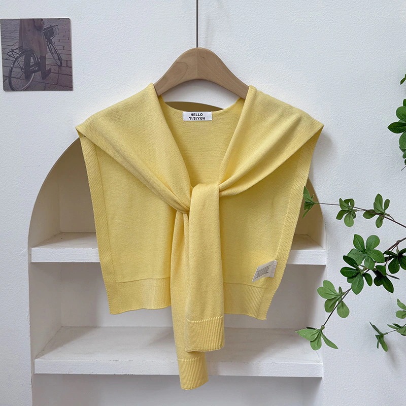 ニットショール女性春夏韓国風 新作高級感無地エアコン用ウールショール 偽襟付きベスト オーバーショール