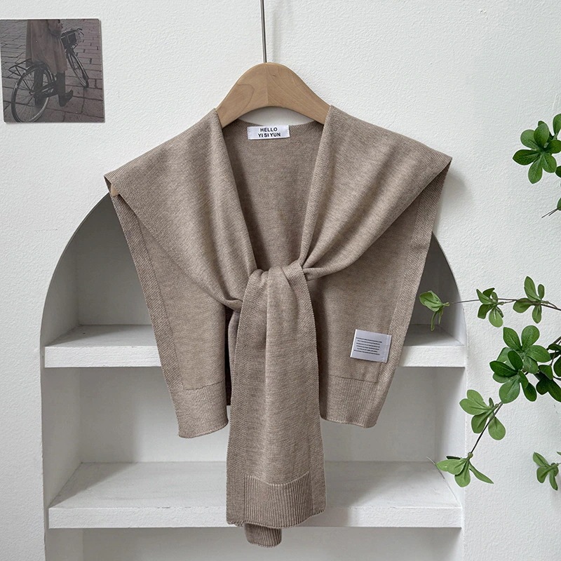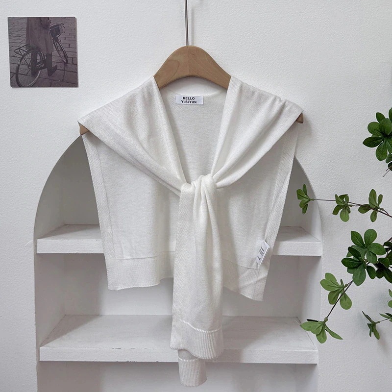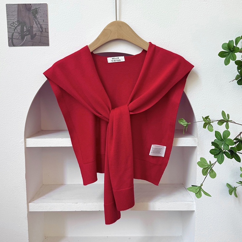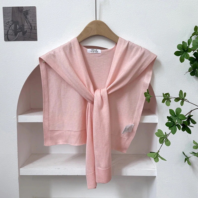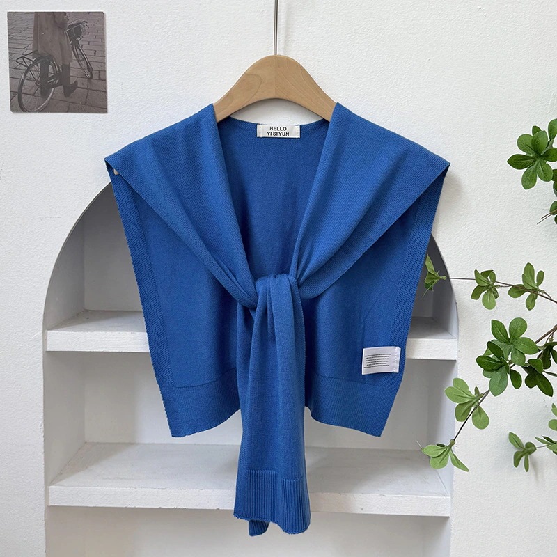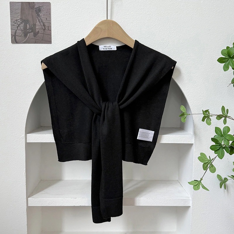 ニットショール女性春夏韓国風 新作高級感無地エアコン用ウールショール 偽襟付きベスト オーバーショール
