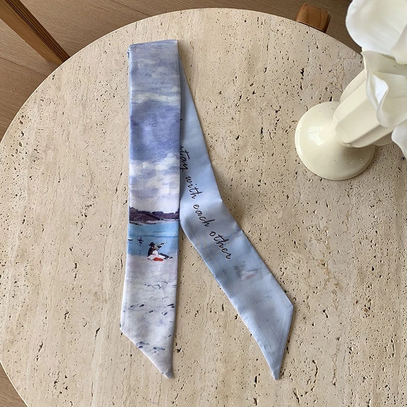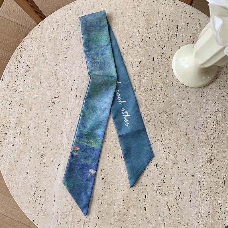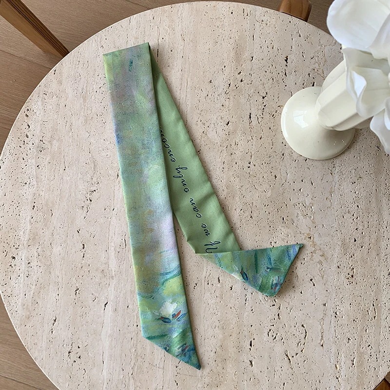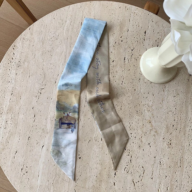 ロングスカーフヘアバンド女性春夏 万能韓国風レトロ油絵装飾スカーフ結び紐リボンヘアバンドヘアアクセサリースカーフ
