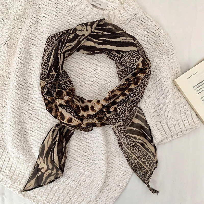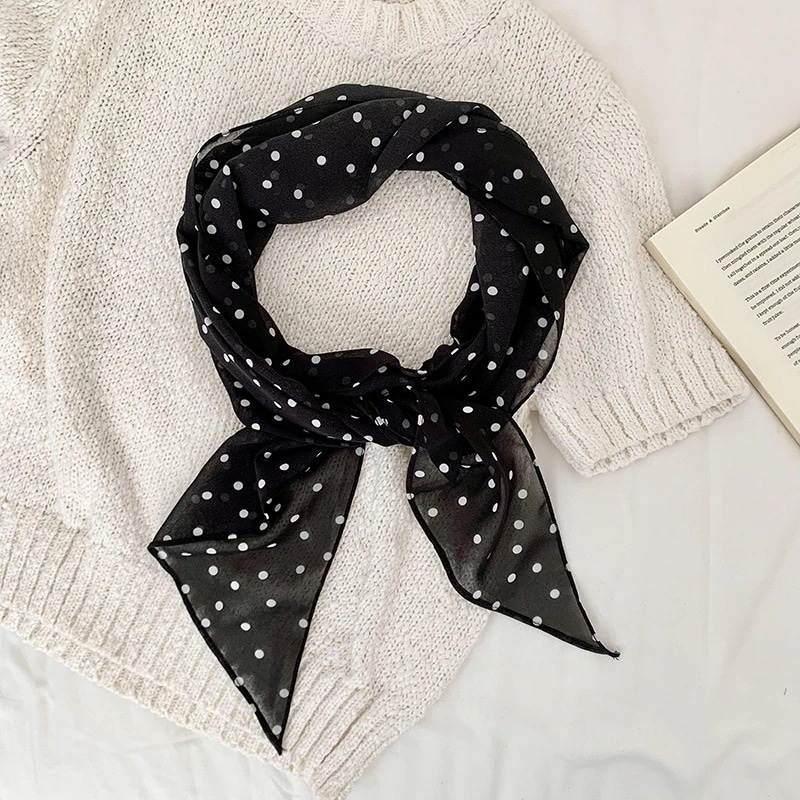 ロングスカーフ(女性用) 万能デザイン 装飾シフォン付き ネックウォーマー チョーカー ヘアバンド スカーフ
