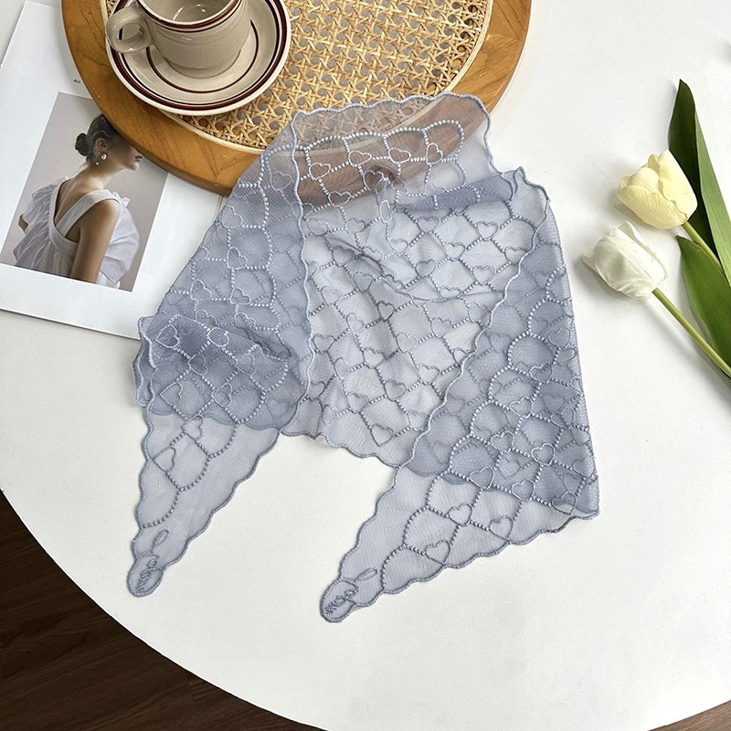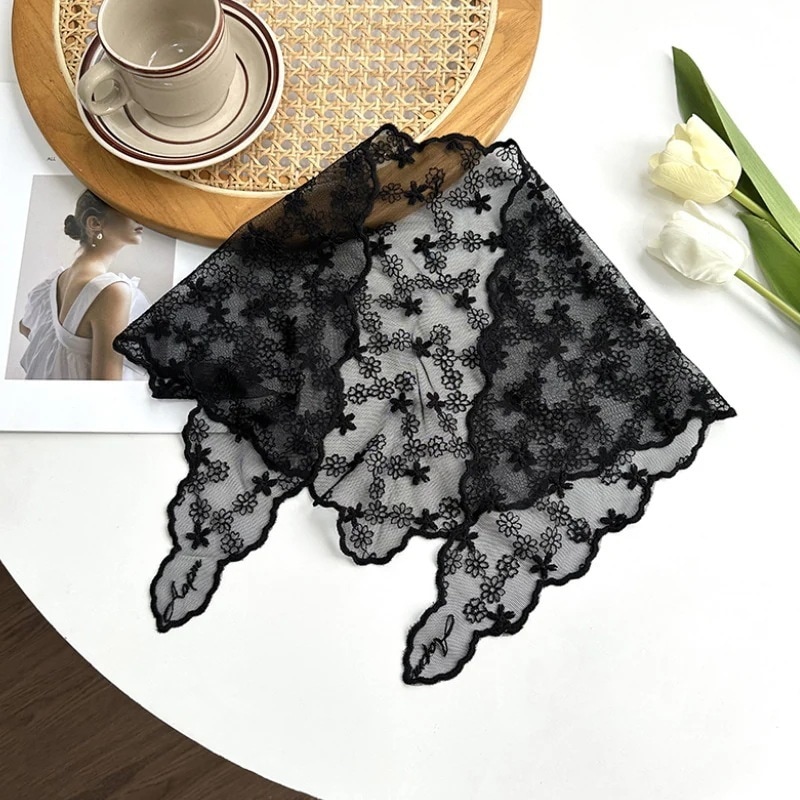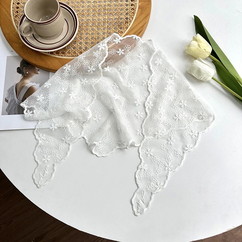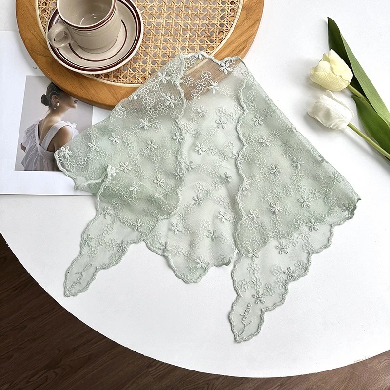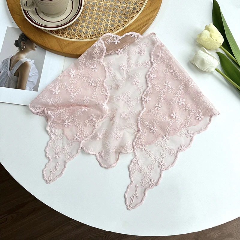 【2個】フレンチレトロレースフラワーヘッドスカーフ 甘美なビーチ用三角スカーフ 韓国風アート三角ヘアバンド トレンドスカーフ