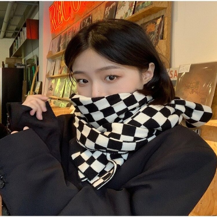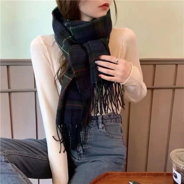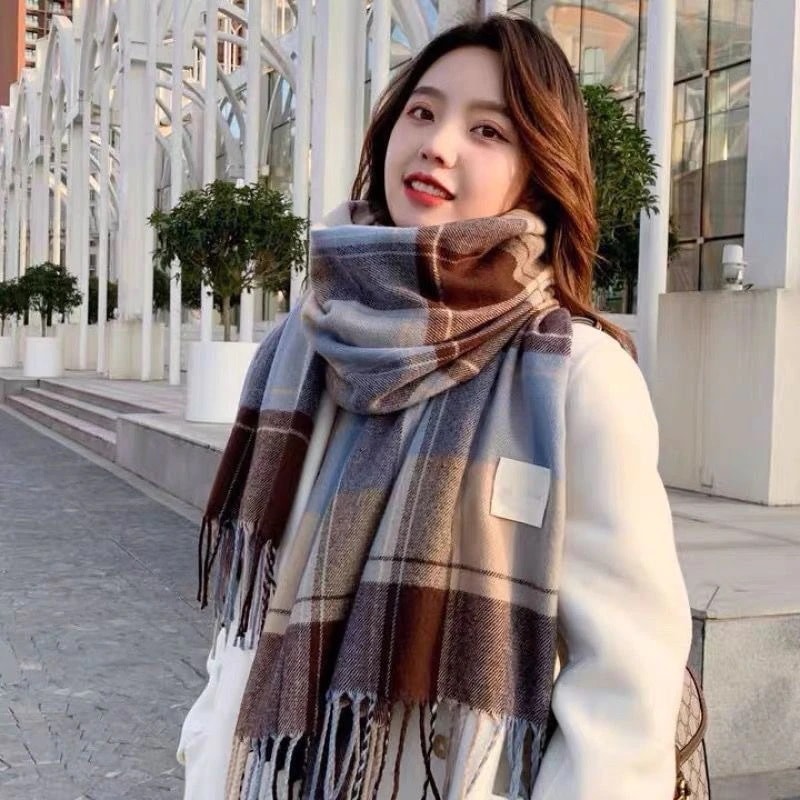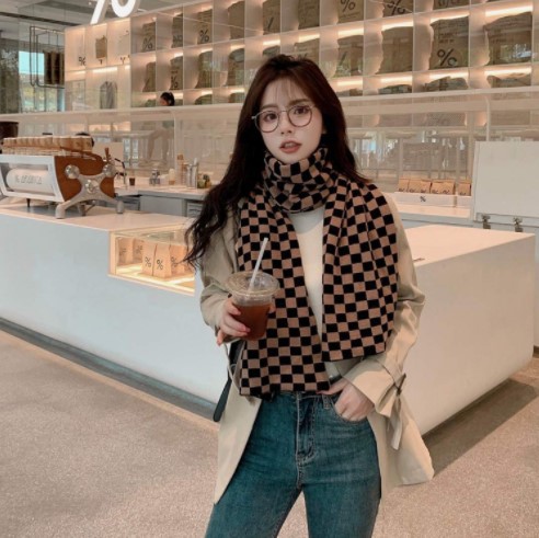 韓国初チェックストールマフラー 厚手防寒 学生用デイリーアイテム 柔らかい触感