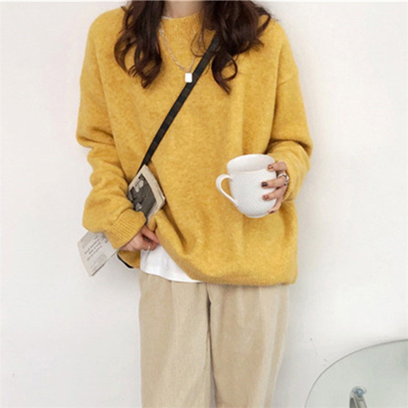 韓国人気商品 厚手 ニット服 セーター 女性 冬アウター ルーズ セーター 大サイズ カシミヤタッチ 無地 厚手シャツ 秋冬 韓国ファッション レディース ベーシックニット ロンT