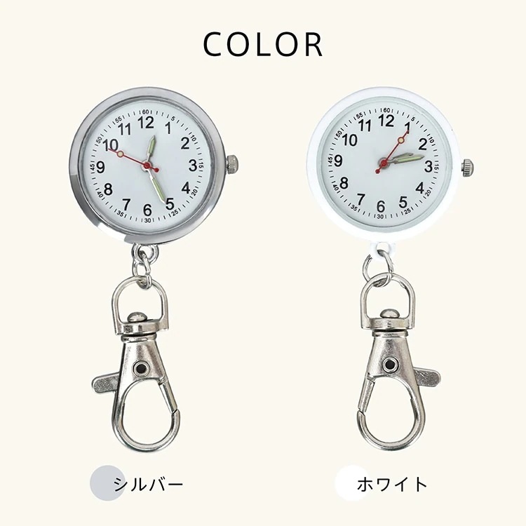 ナースウォッチ リールキーホルダー ストラップ付き 小型 軽量 蓄光式の3針 見やすい文字盤 鍵をつけて機能 介護職 専門職 散歩 運動 かわいい シンプル