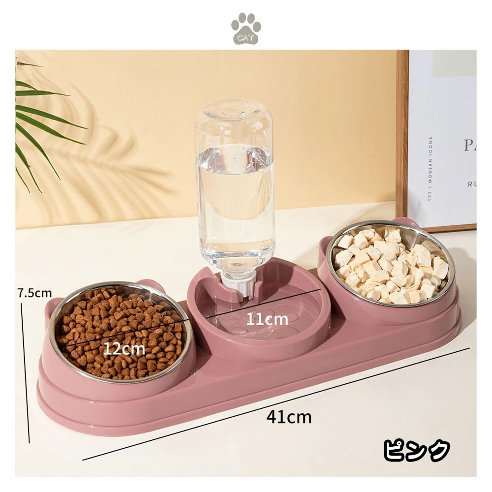 【当日発送 あす楽対応】 ぺット用フードボウル 1台3役 ペット食器 ペットボウル 水飲み 餌入れ 自動給水 抗菌 取り外し可能 丸洗いOK 304ステンレス 多頭飼い 猫 犬 ペット用品