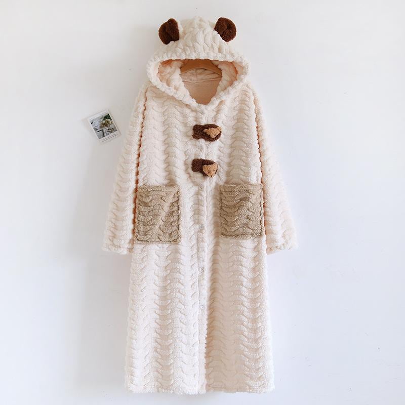 女性のためのコーラルフリースパジャマ厚いフランネルロングキュートなスタイルのナイトガウン秋冬 着痩せ デニム カート コスプレ ピンク 桃柄 癒し レディース カジュアル パンツ 大人 ミニスカート