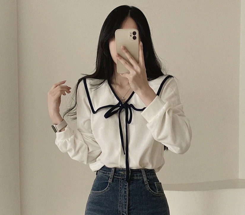 韓国春の新作フレンチテイスト ラージカラー・リボンタイデザイン ゆったり着回せるロングスリーブシャツ ブラウス・シフォンシャツ