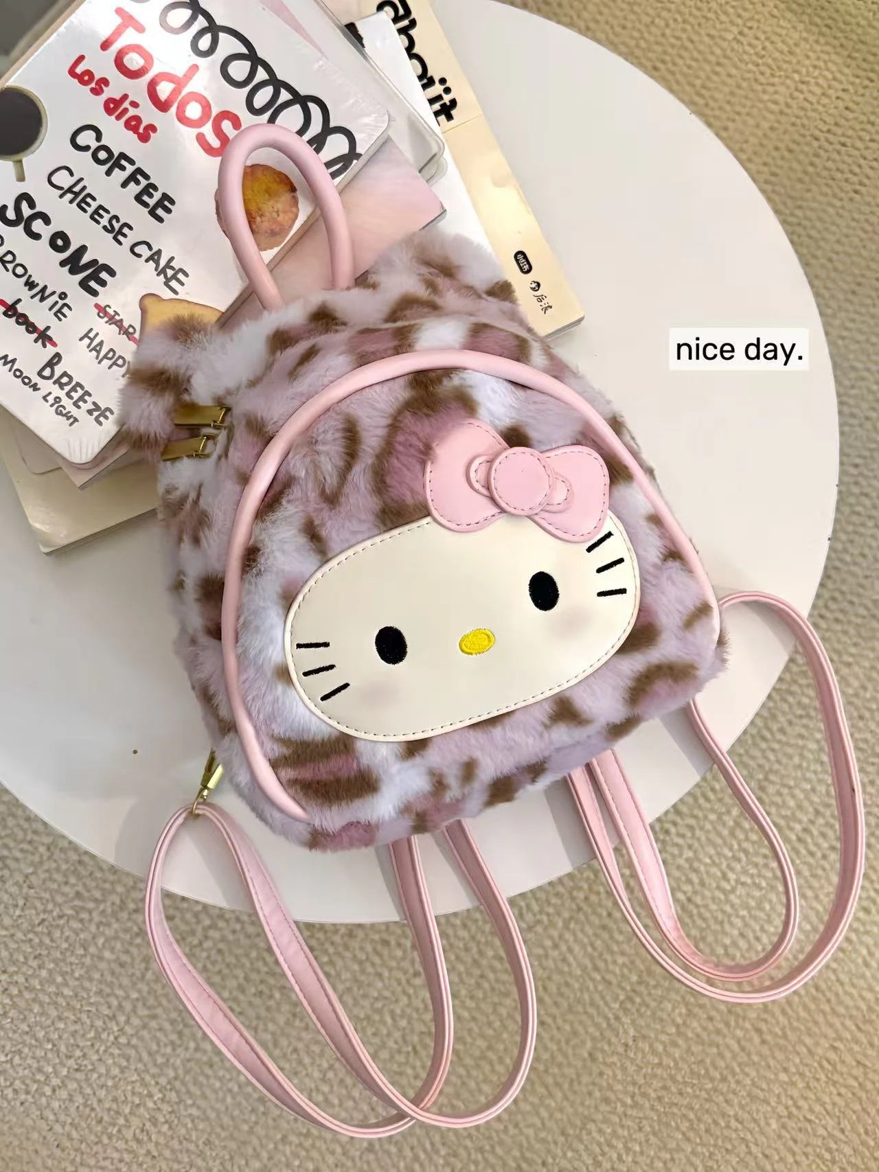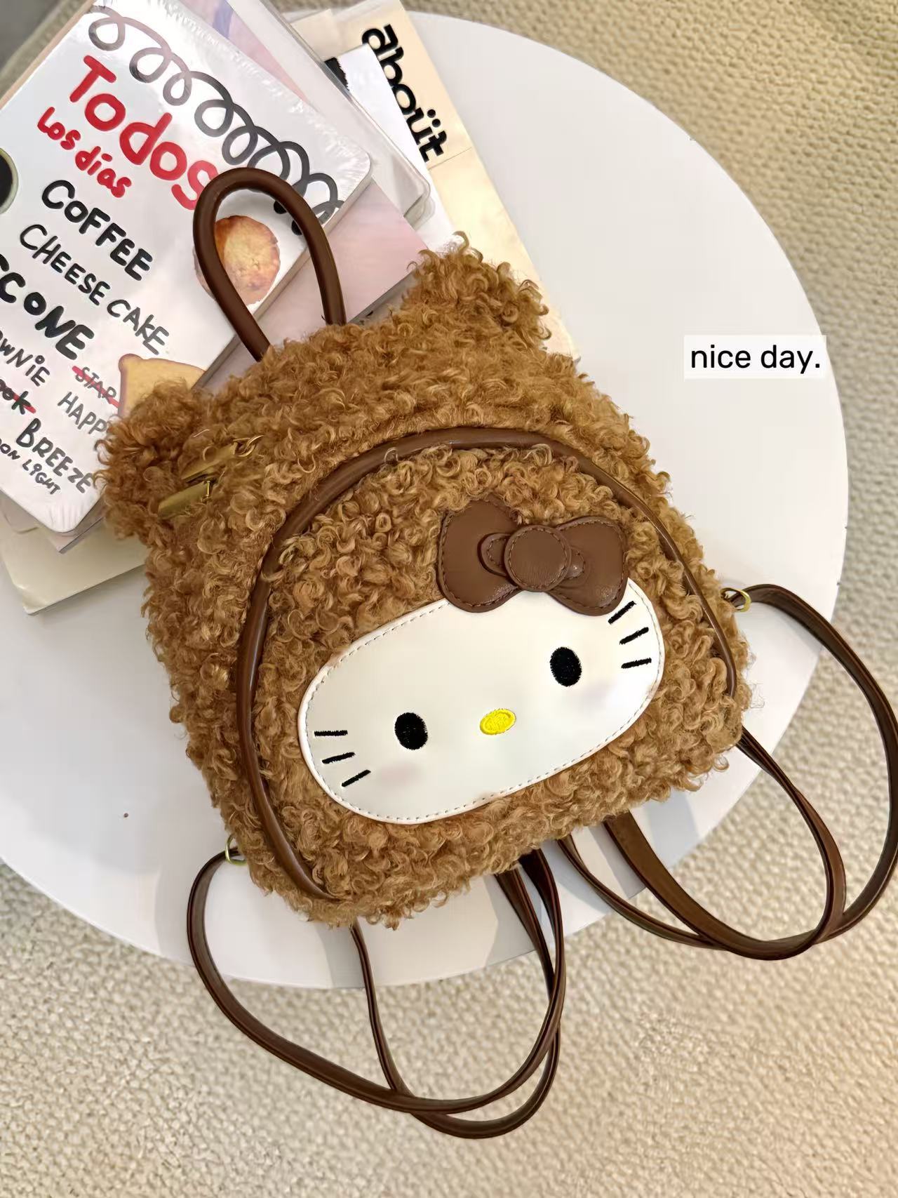 【迅速な出荷】新作 もこもこ くまちゃん ヘッドカバー リュック ガーリー ヒョウ柄 リュック オシャレ 軽量 萌え かわいい キャラクター ハローキティ リュック