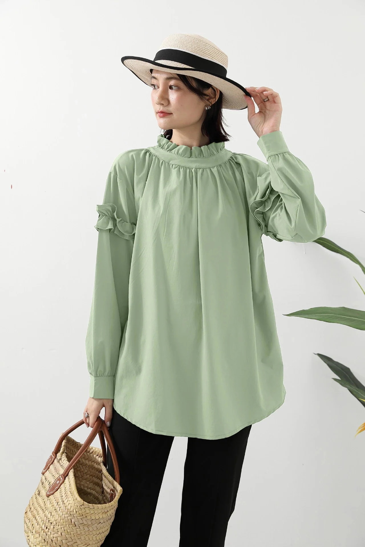2026年夏 速乾性 ゆったりシルエット 単色 ハイネック長袖 レディース シャツ・シフォンブラウス