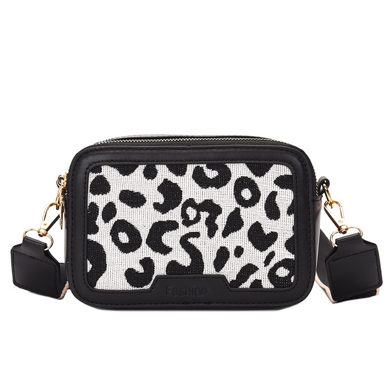 ミニ ショルダーバッグ レトロ風バッグ ヒョウ柄ポシェット スクエア ジッパー ミニ ショルダーバッグ広い肩紐のヒョウ柄ミニバッグ 最新ファッションスクエアバッグ 万能カジュアルショルダーバッグ
