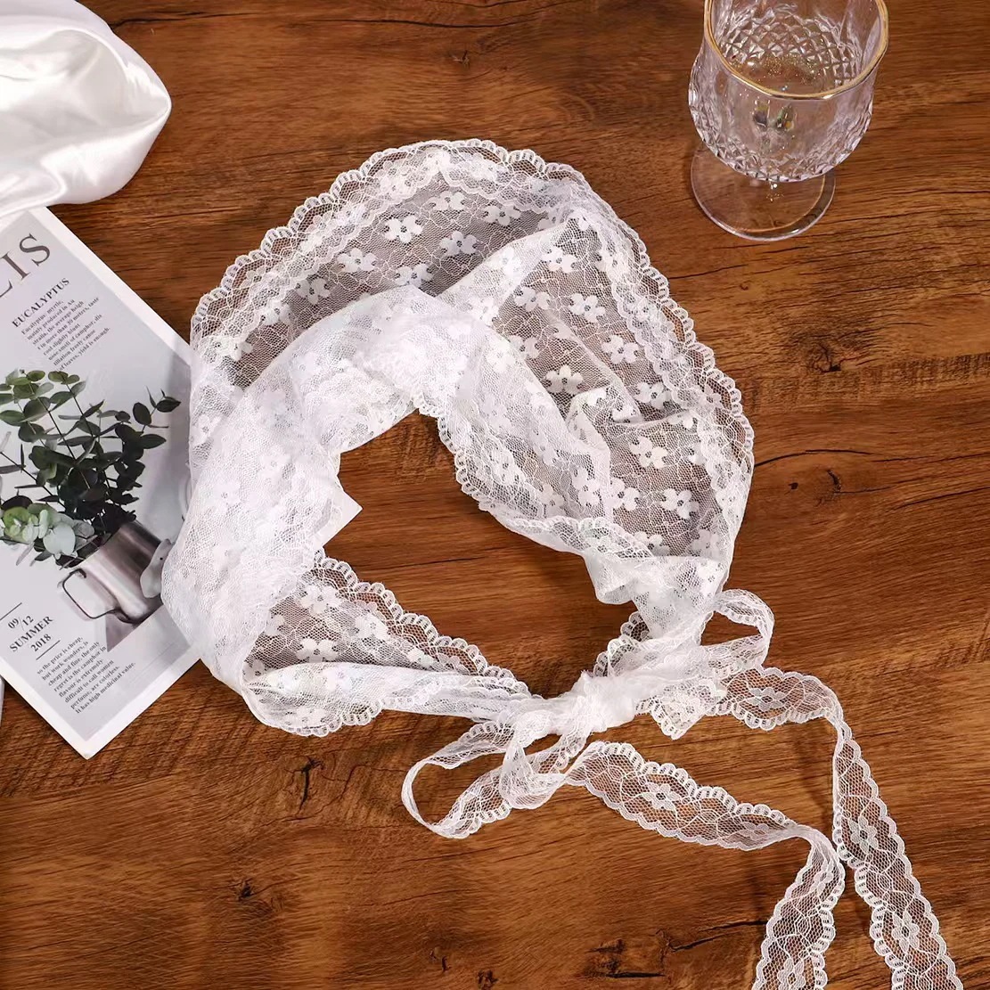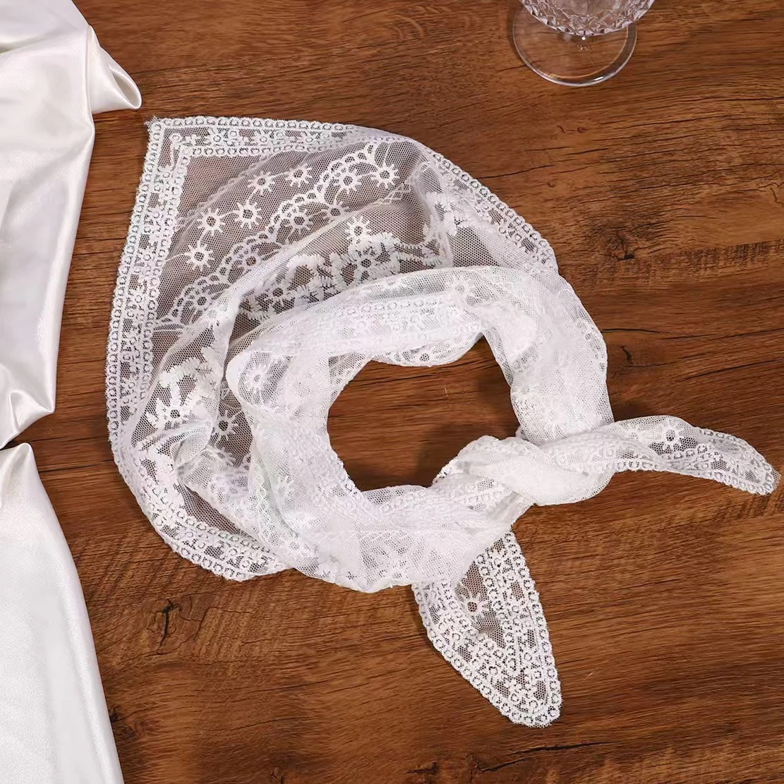 高級感のある三角スカーフ フランス風ヘッドスカーフ 夏用 ガーデンスカーフ ヘアバンド付きレース 髪を結べるヘアアクセサリー