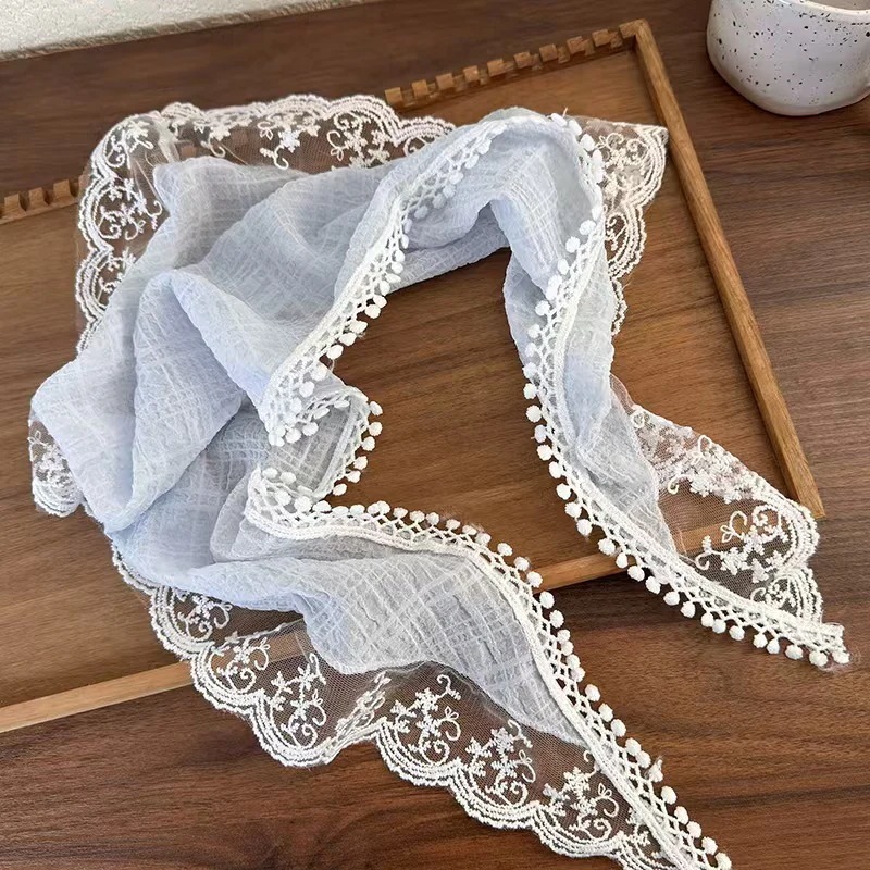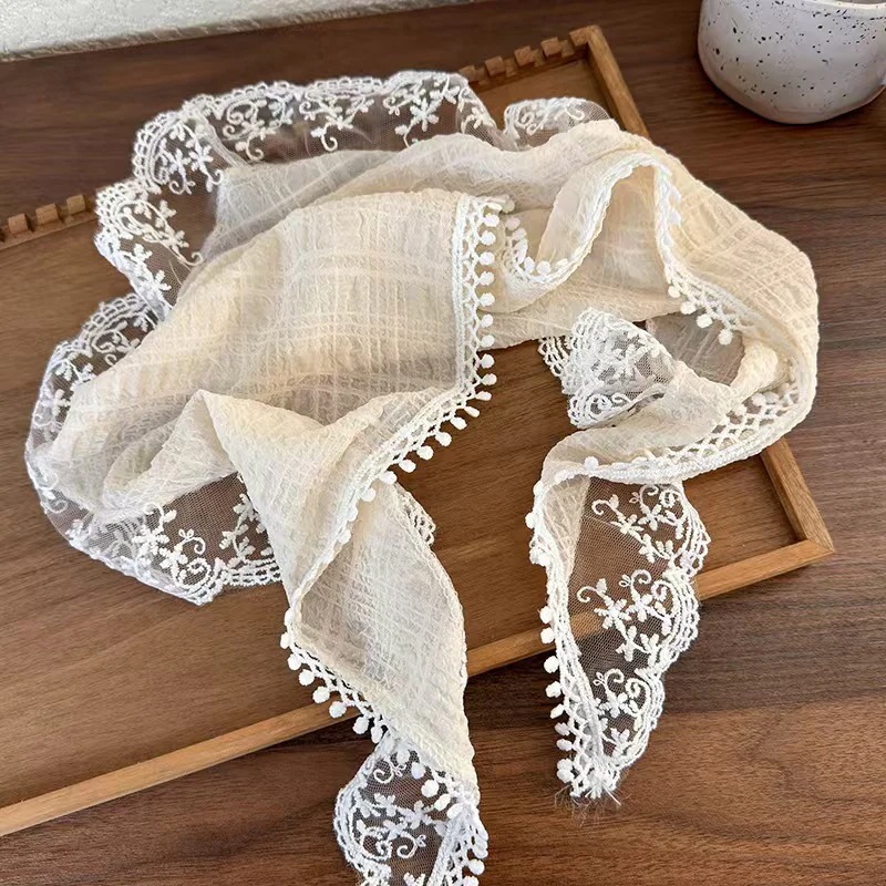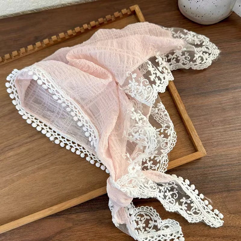 新作 フランス風レース三角巾 ベージュ フリル縁飾り ヘッドスカーフ ヘアバンド リボンヘアバンド