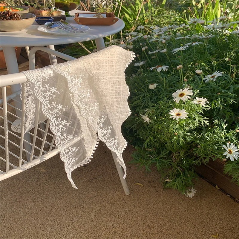 オリジナルデザイン フランス風レース三角巾 花柄 ベージュ おしゃれレトロ装飾 ヘッドスカーフ ヘアバンド 女性用 リボン付き
