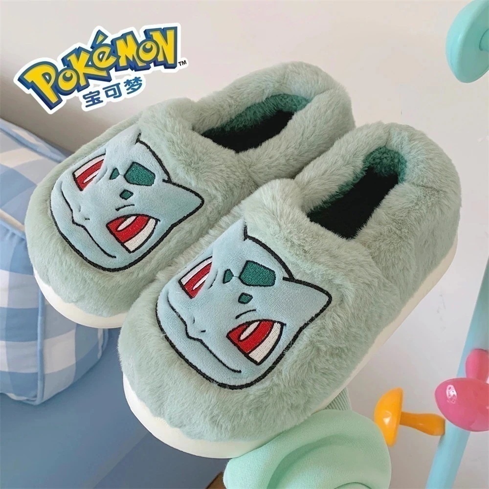 ポケモン フシギダネ 屋内毛皮のような靴の女性の豪華なベルベットの暖かいソフトソール快適な綿のスリッパ 上履き