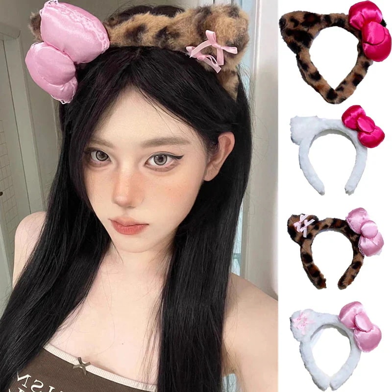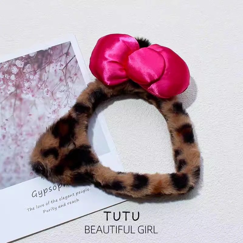 ヒョウ柄モコモコカチューシャ洗顔化粧マスクリボンカチューシャカチューシャギャル カチューシャ ヘアバンド