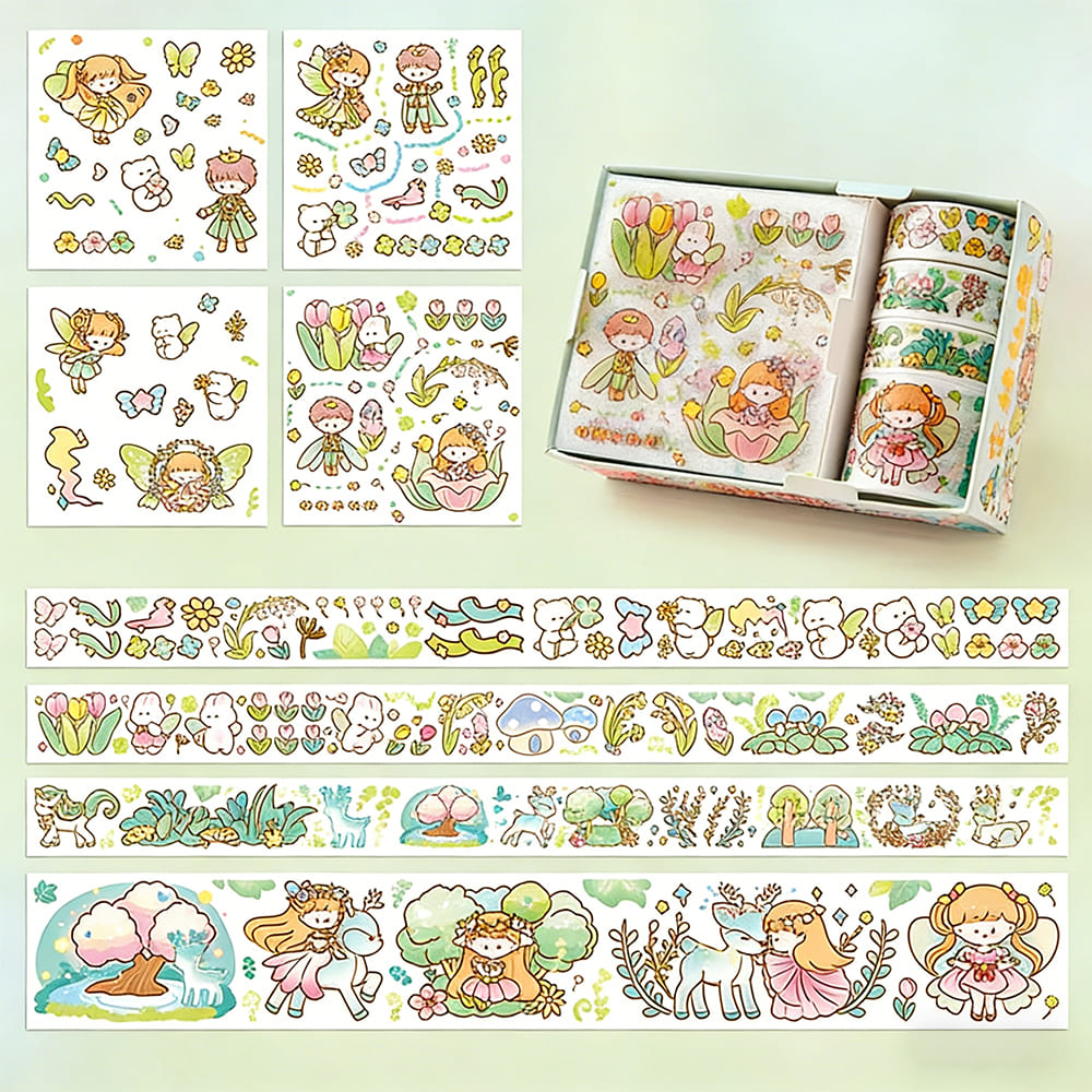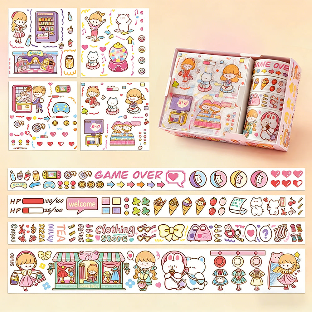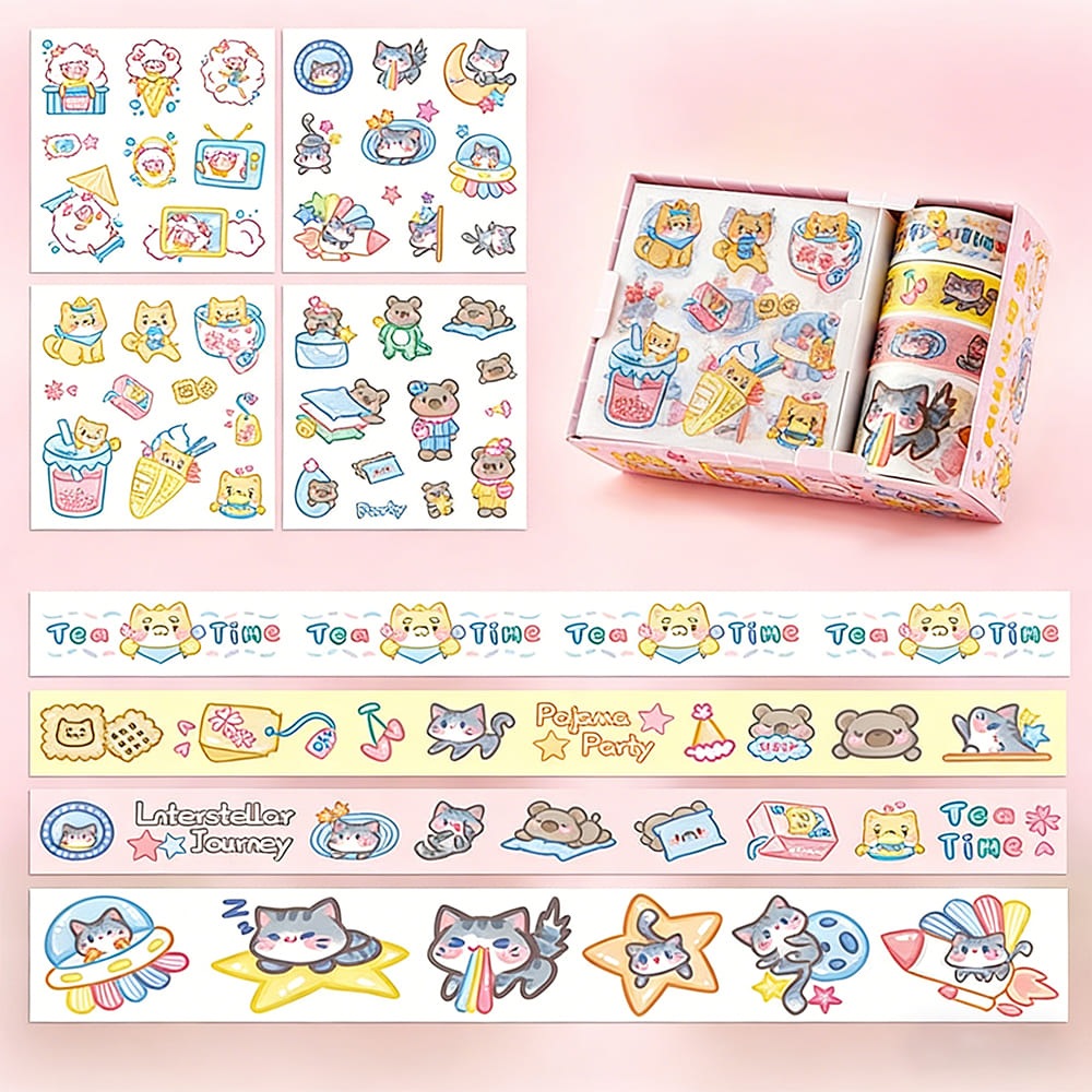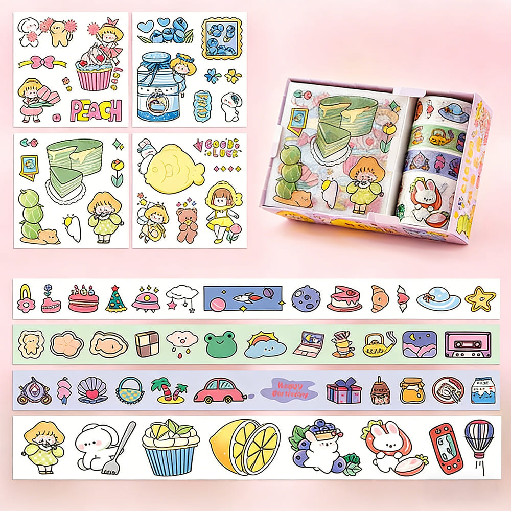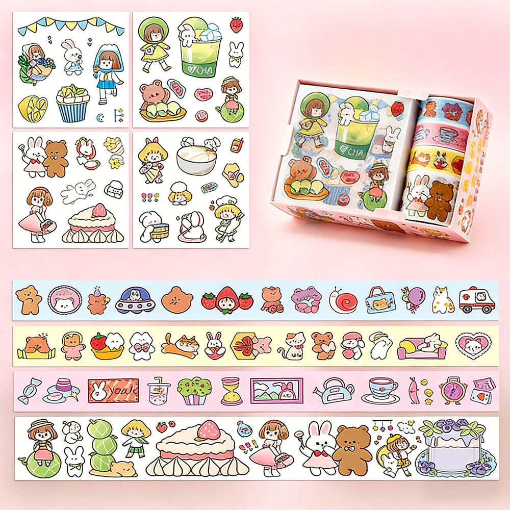 テープ&シールセット 半透明PETステッカー 和紙マスキングテープ 可愛いイラスト コラージュ素材 手帳デコ 手紙DIY スクラップブック用 プレゼントにも最適
