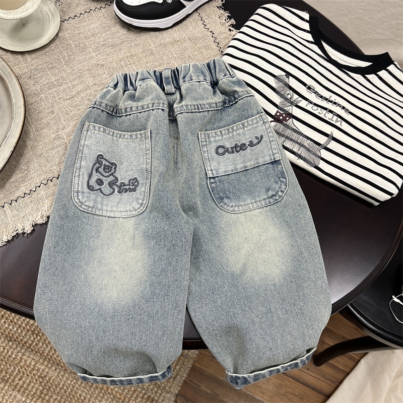 キッズデニム春物カジュアルシンプル長ズボン 子供春用韓国風パンツ