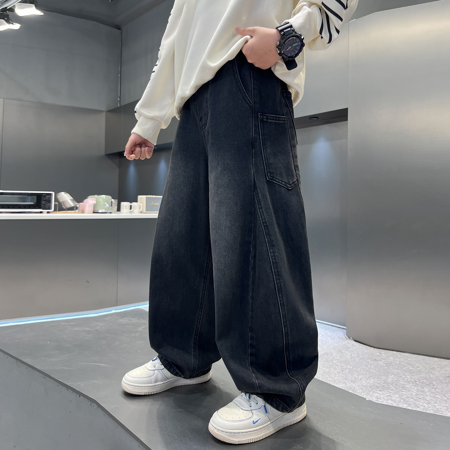 キッズ デニムパンツ 春夏秋用 新作 子供用春物 ゆったりデニムパンツ ワイドストレートパンツ