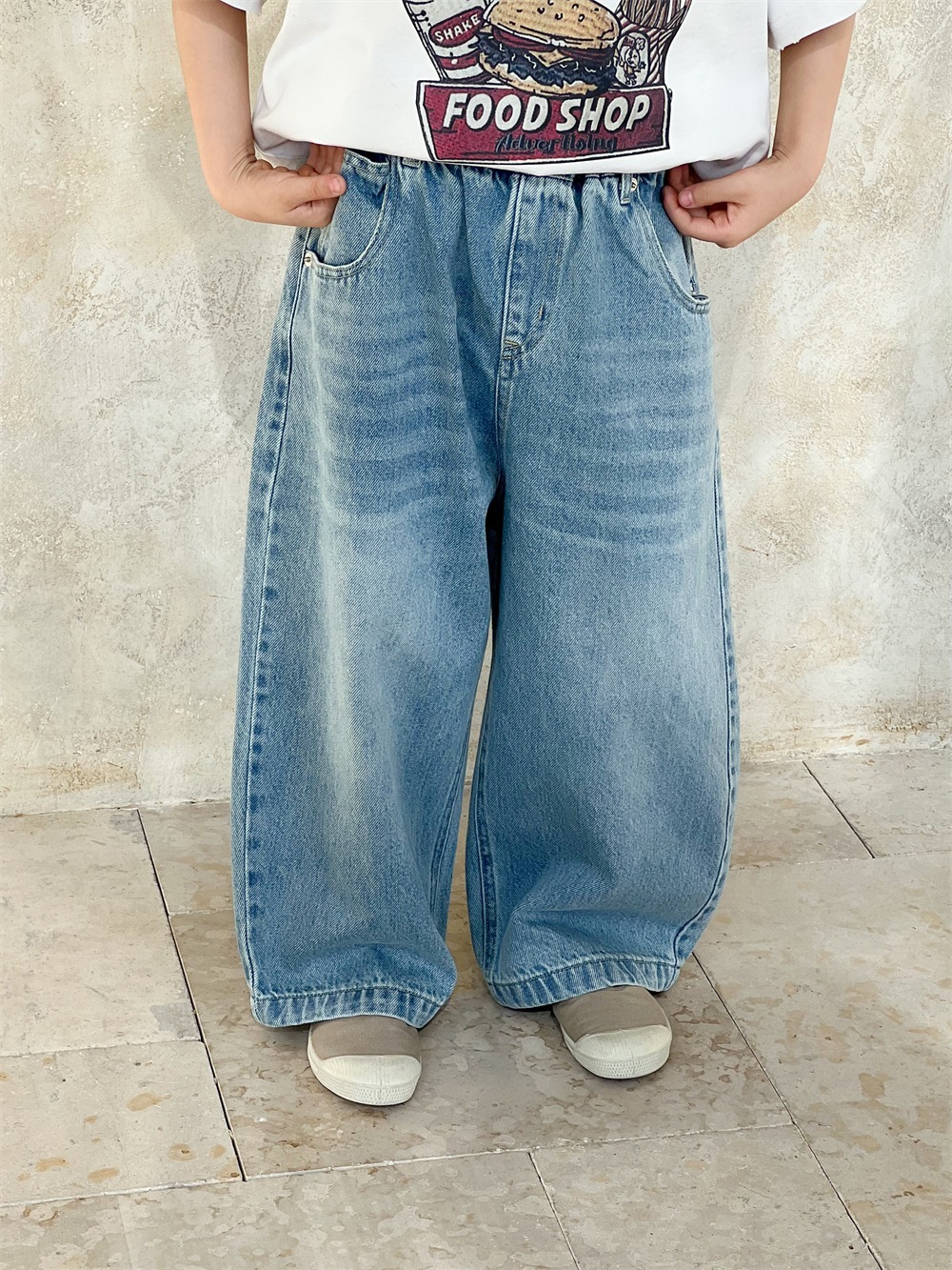 キッズ デニムパンツ ファッショナブル男女児 ウォッシュ加工カジュアル長ズボン