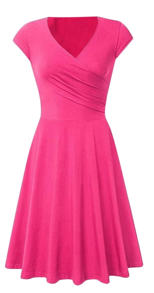 【発売特典】カシュクールワンピース 半袖 フレア 膝丈 レディース 大きいサイズ Aライン ミディアム丈 シンプル 無地 S M L XL 2XL 3XL ミディ