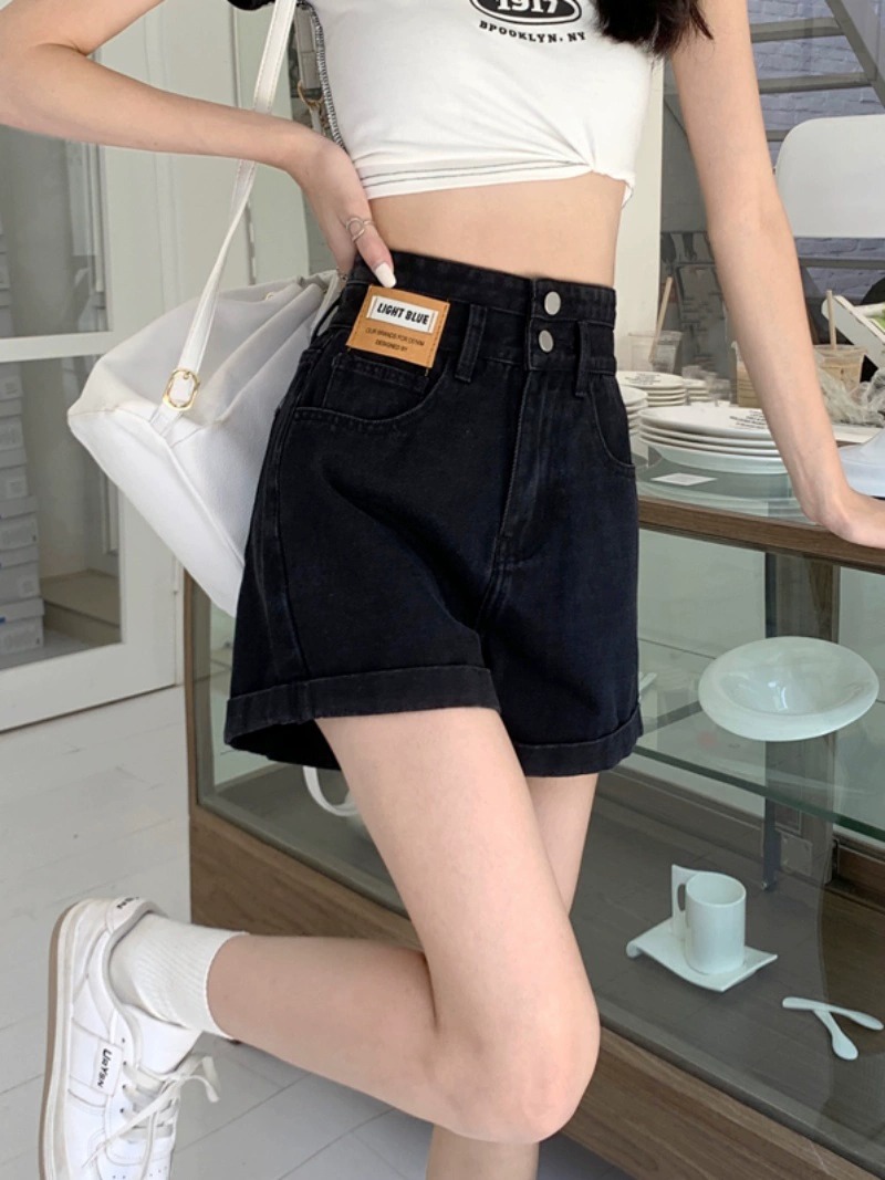 脚見せショートパンツ スーパーハイウエストデニムパンツレディース25ワイドAラインパンツ