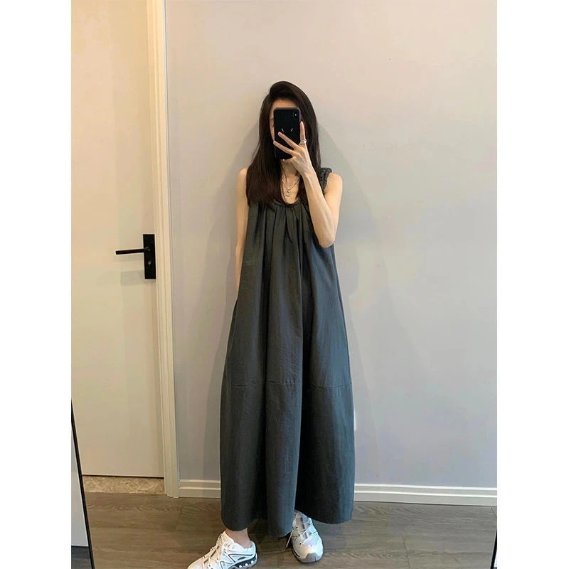 ワンピース プリーツノースリーブロングベストドレス女性のドレスの韓国語バージョンロングドレス