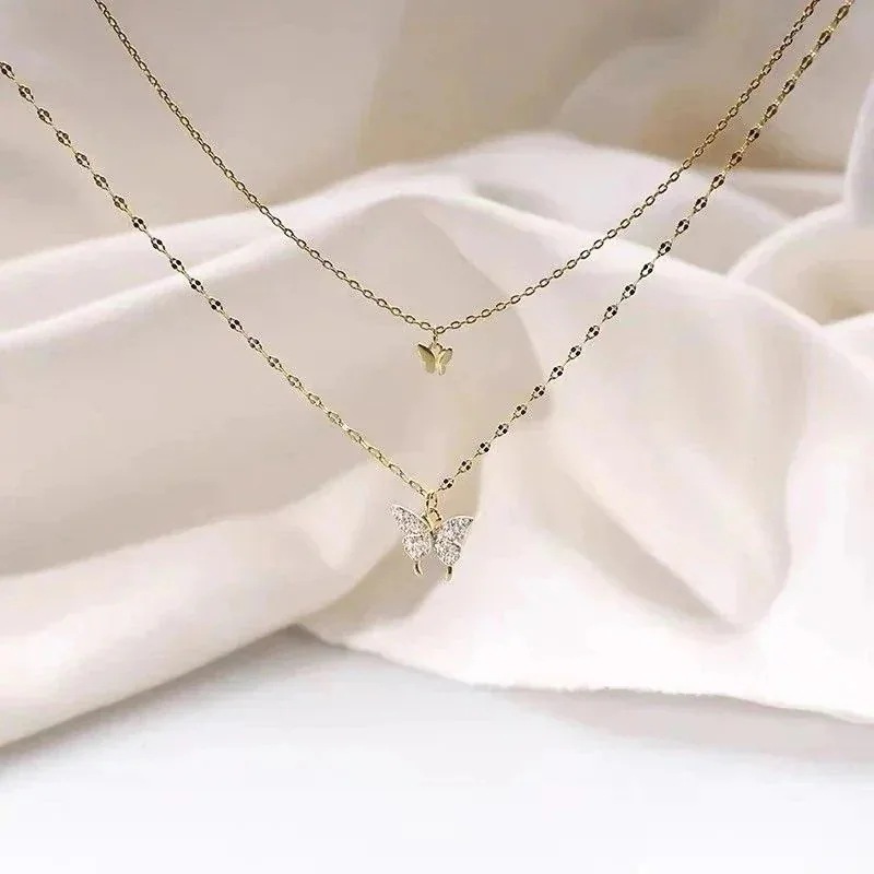 ネックレス二重層蝶鎖気質と汎用性の高い韓国版新ネックレス短めが可愛いチョーカーネックレス美しい首元ネックレス