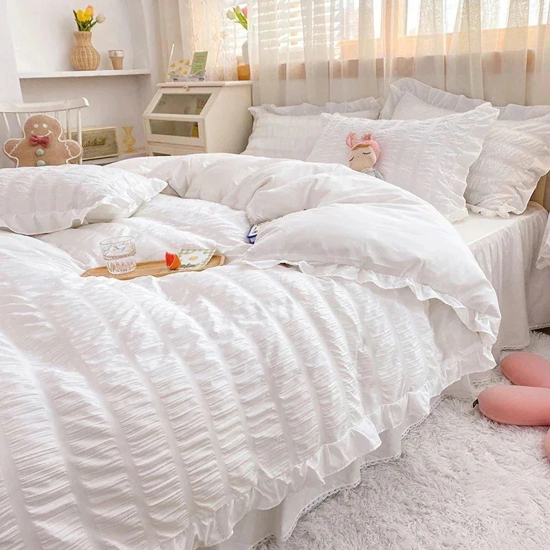 二枚目499FF布団カバー 枕カバー 34点セットフリルカバー 布団カバー マイクロファイバー 掛布団カバー シングル セミ キング フランネル 可愛い 寝具 布団
