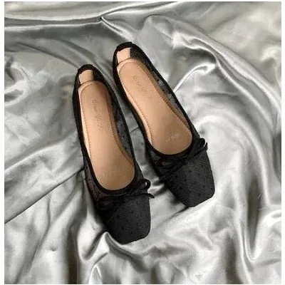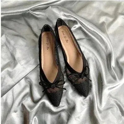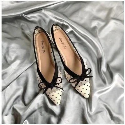 韓国のメッシュ水玉レトロフラットサンダルフラットヒールレース水玉つま先の靴ポインテッドトゥドッ