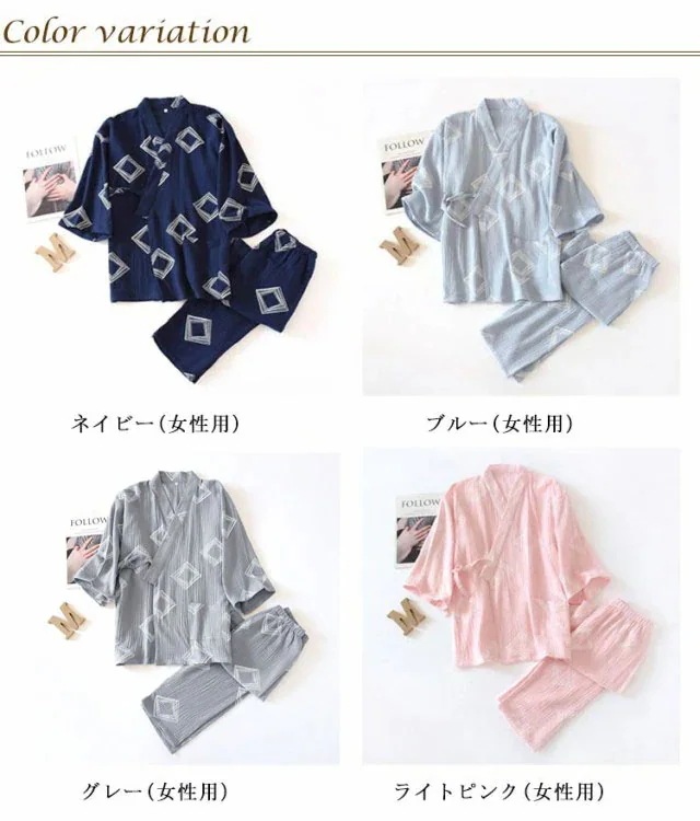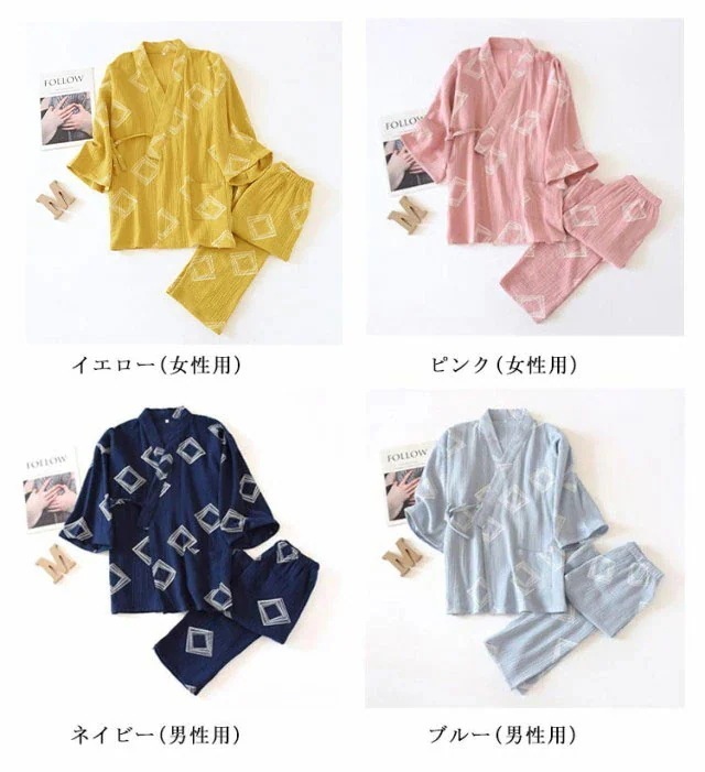 パジャマ メンズ ねまき レディース ウェア 和風 甚平 浴衣 二重 ガーゼ 前開き 五分袖 通気性 吸汗吸湿 綿 コットン 女性 寝間着 部屋着 作務衣 お風呂 旅館 浴衣 ホテル 上下セッ