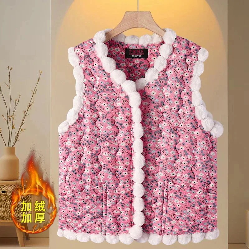 【大好評!超激安】 韓国人気 カラーライン ハルモニチョッキ おばあちゃんチョッキ かわいい 花柄 ベスト 裏起毛 あったか 極暖 秋冬 キムジャンチョッキ ベスト