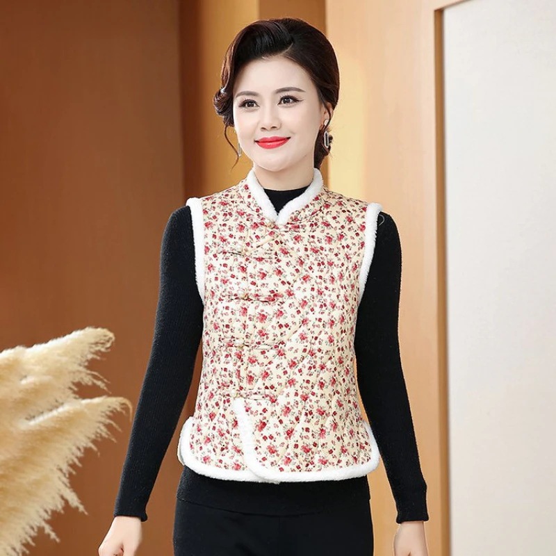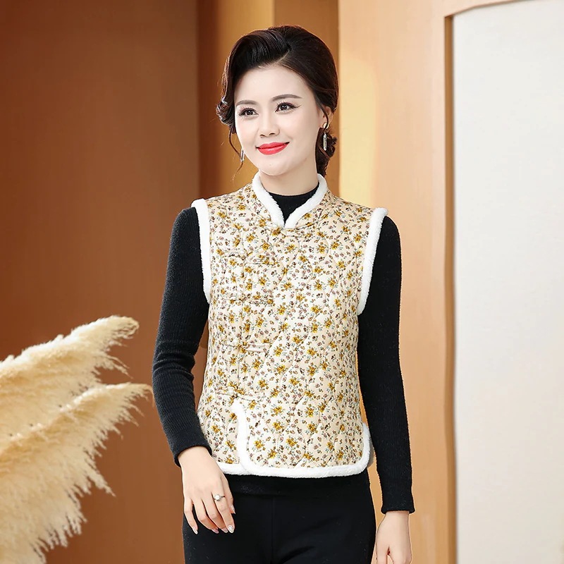 【2025新作登録】韓国人気 カラーライン ハルモニチョッキ おばあちゃんチョッキ かわいい 花柄 ベスト 裏起毛 あったか 極暖 秋冬 キムジャンチョッキ ベスト