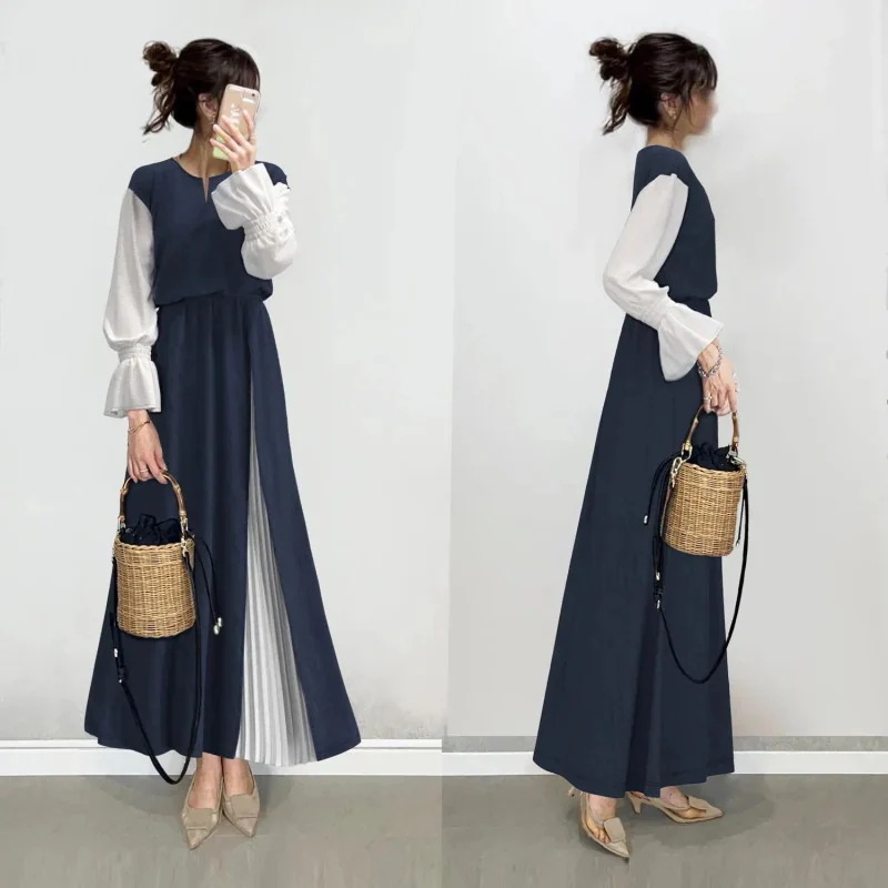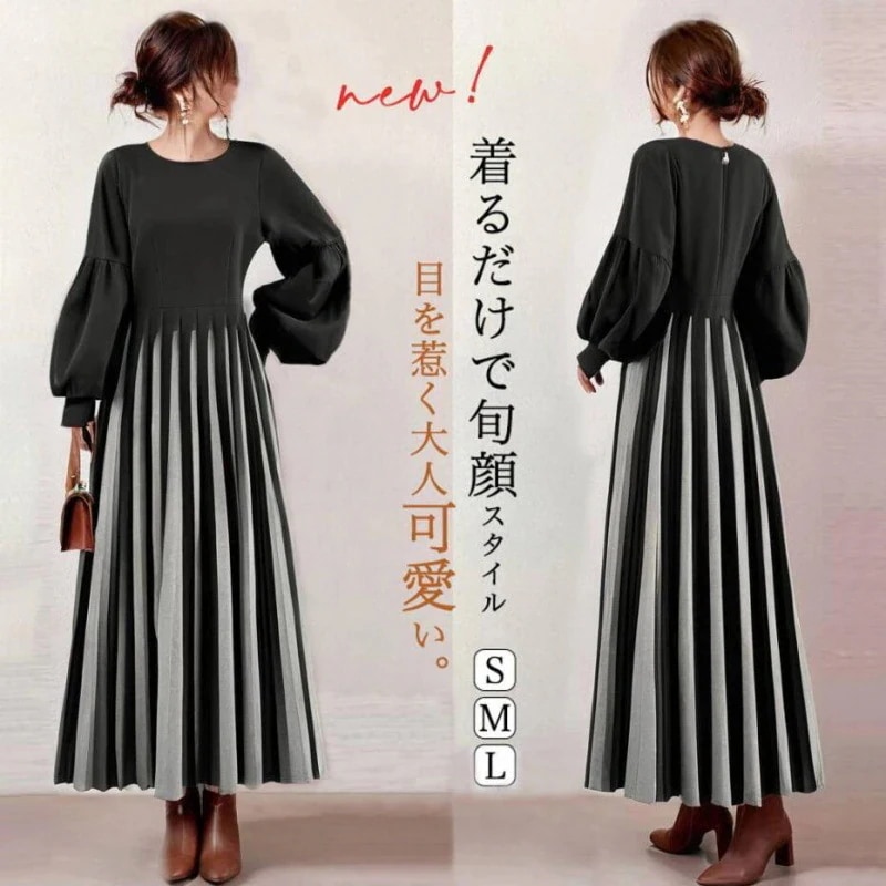 ワンピース レディース 可愛い 長袖 ロングワンピース スカート 通勤着 ゆったり 体型カバー 30代 40代 50代