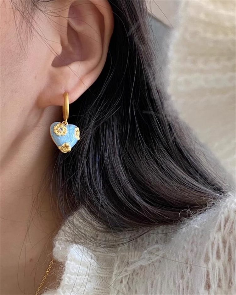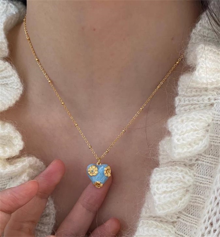 オンリーワントゥーユーINSスタイル 2026新作 誕生日プレゼントに ネックレス 2デザイン選択 ブルー ヴィンテージ風エナメル フラワーハート ピアスアクセ