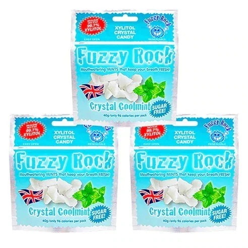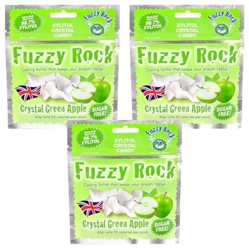Fuzzy RockSUGAR FREE キシリトールクリスタルキャンディ グリーンアップル味 40g × 3個