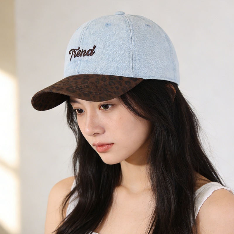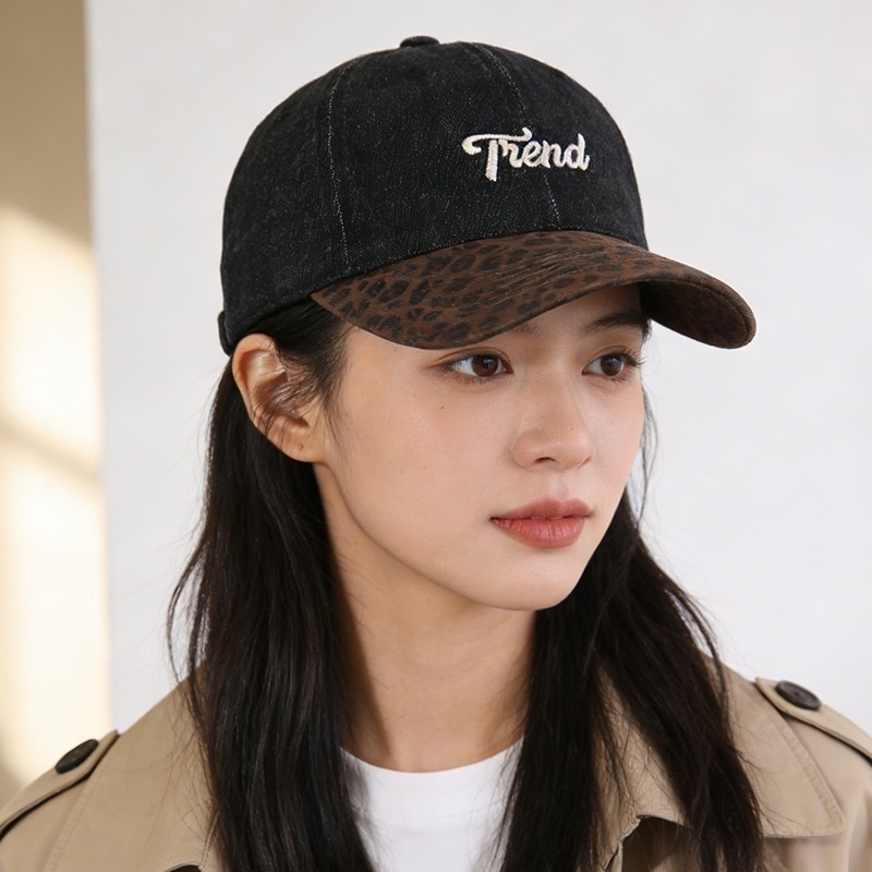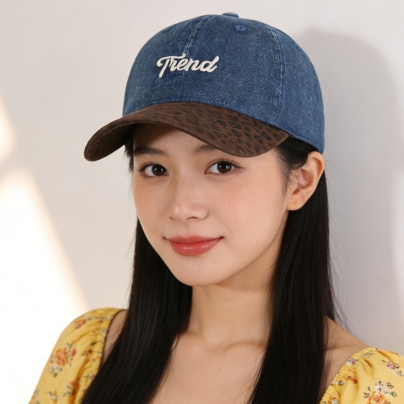 【3日出荷】キャップ レトロ 豹柄 デニム レター刺繍 野球帽 小顔