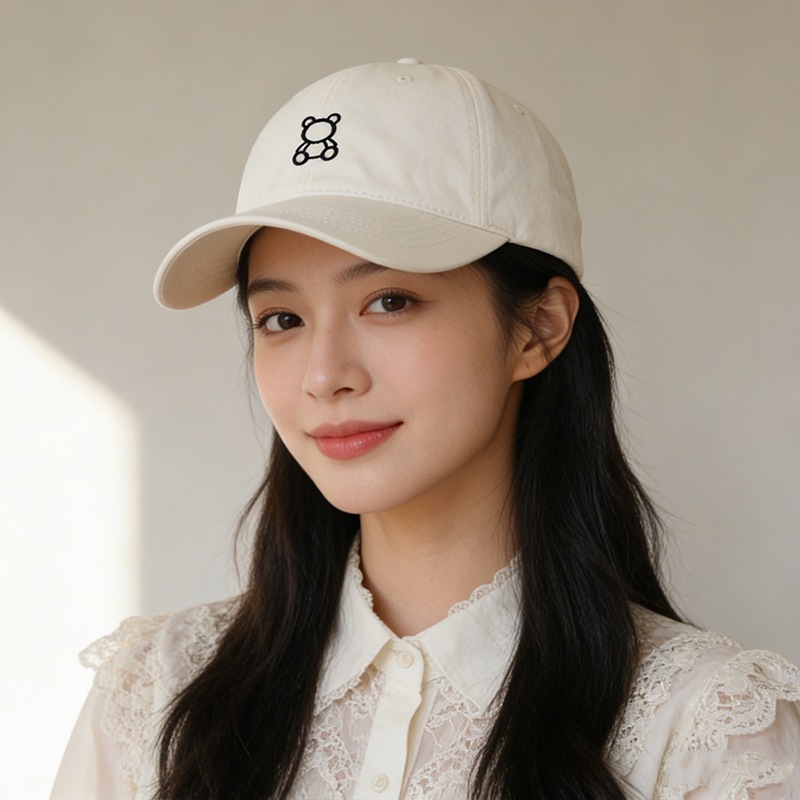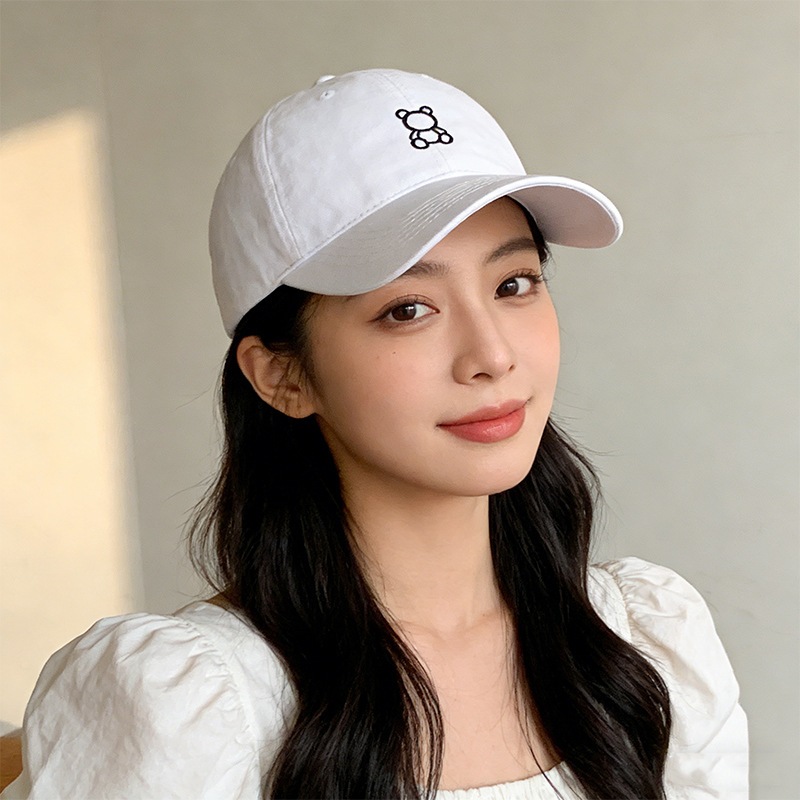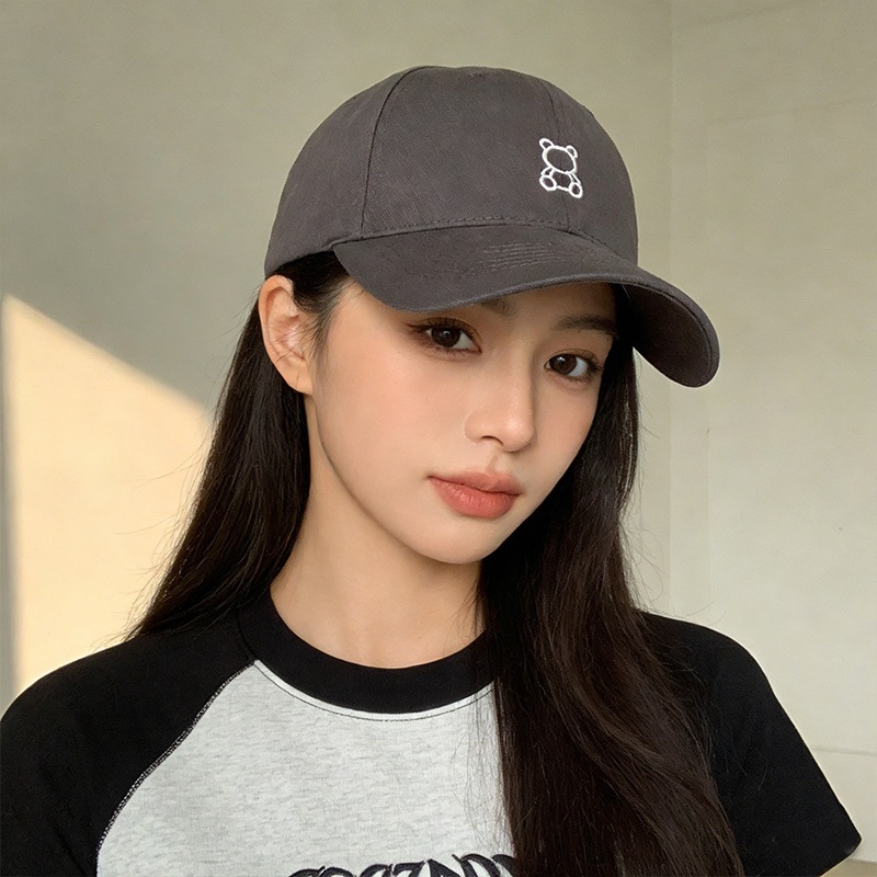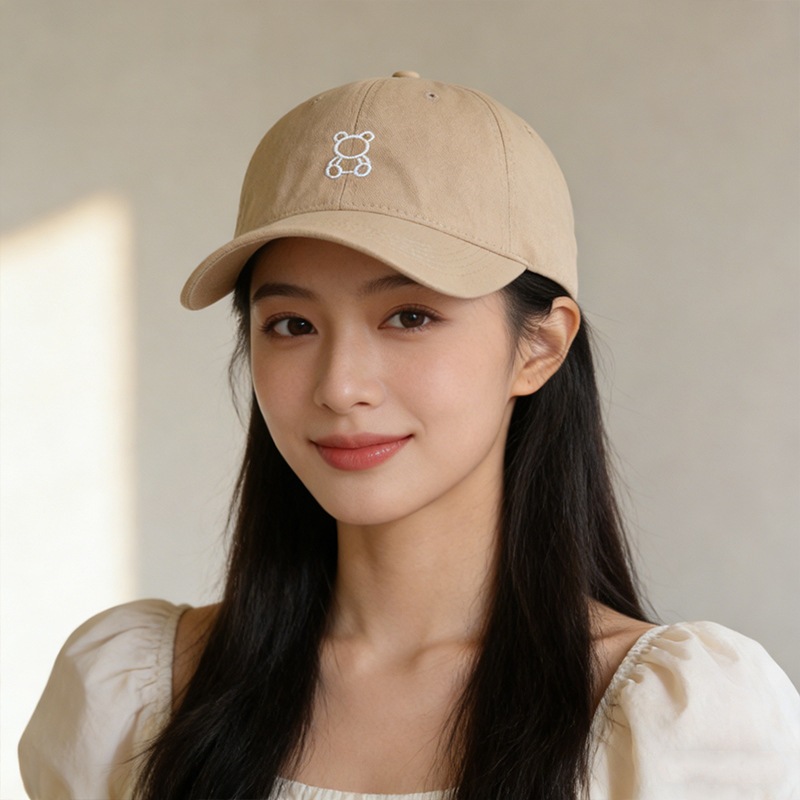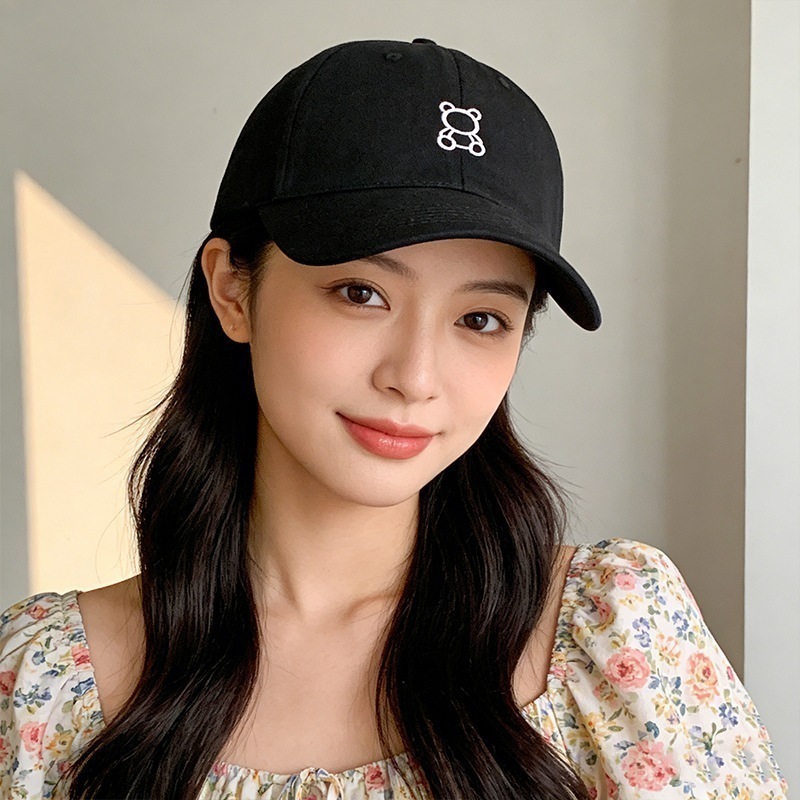 【3日出荷】キャップ 大きい頭囲 小顔 帽子 韓国風 小熊刺繍 レトロ カップル用