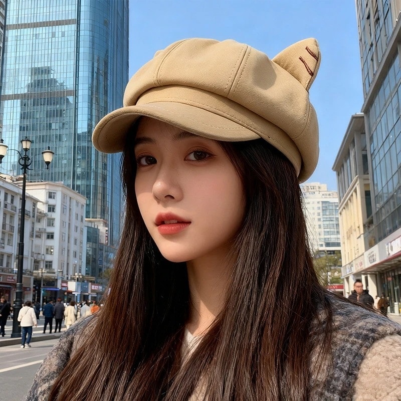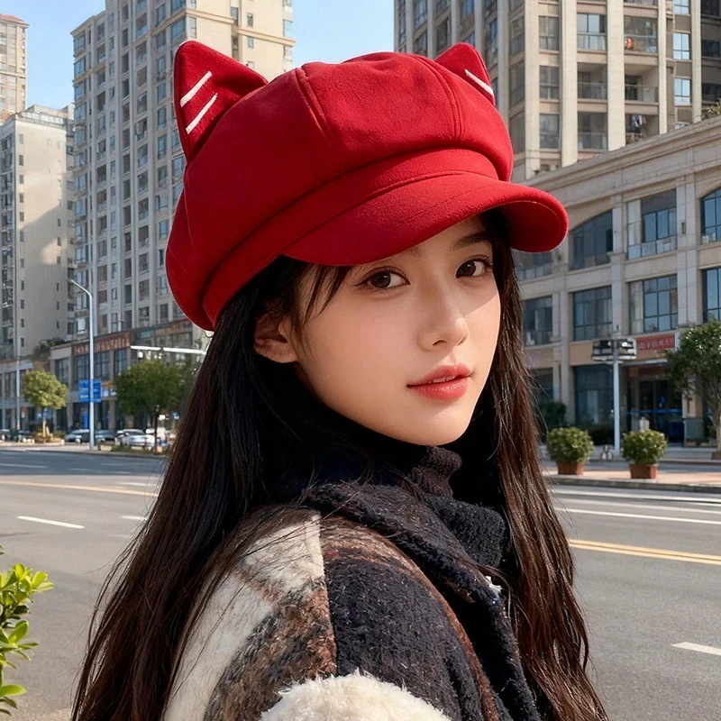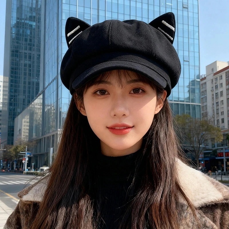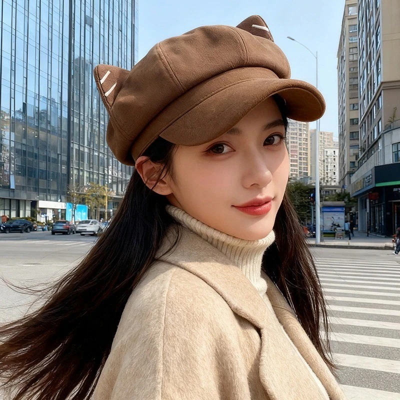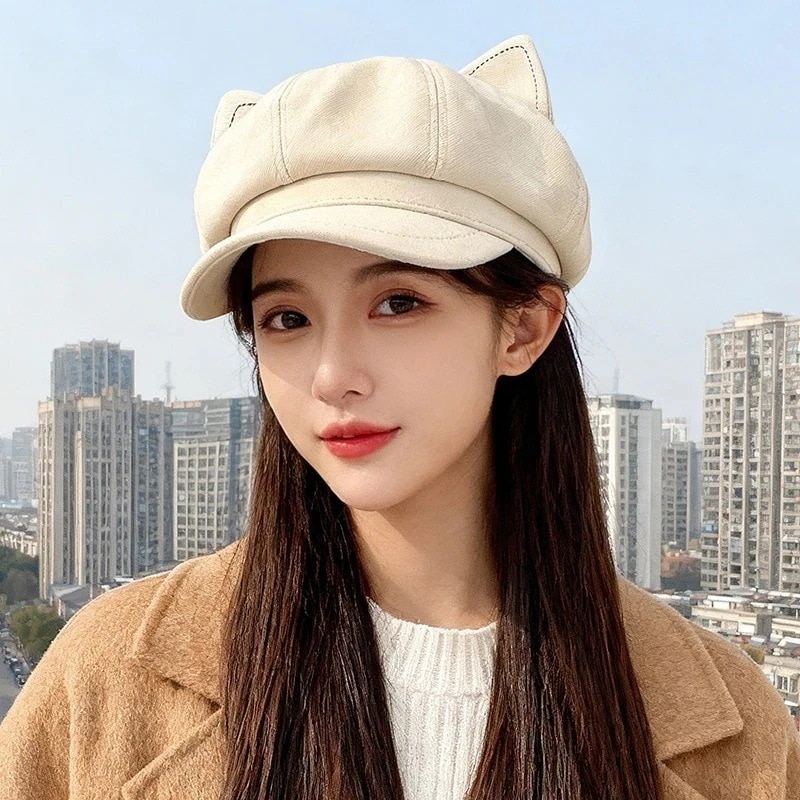【3日出荷】キャップ かわいい 猫耳 毛糸帽 春 小顔 八角帽 英国風 ベレー帽