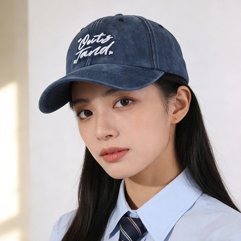【3日出荷】キャップ 韓国風 デニム広いつば 深型 小顔 アウトドア 日よけ 刺繍