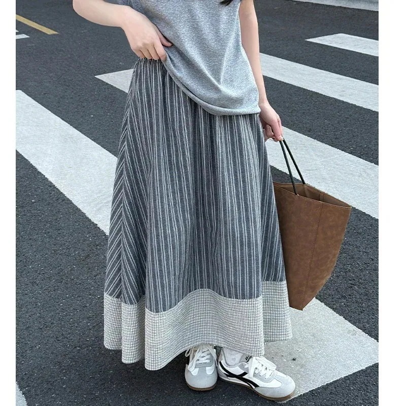 【3日出荷】ボーダースカート 夏ハイウエストスリムロング丈 ドレープ A ラインフレア スカート 春服 レディース