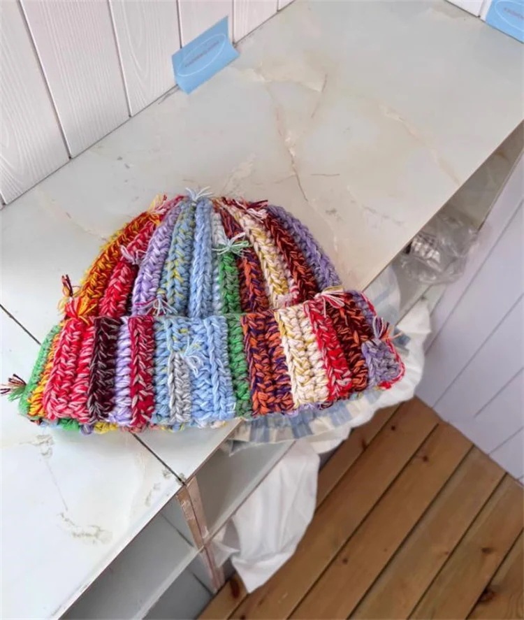 Twinkling star早い者勝ち 心込めた手編み カラフルな配色の太目ゲージニット帽 2026新デザイン 厳しい寒さもしのげる ふんわりとした保温性が自慢
