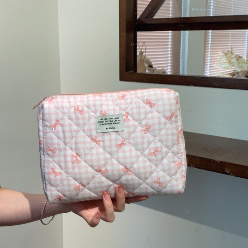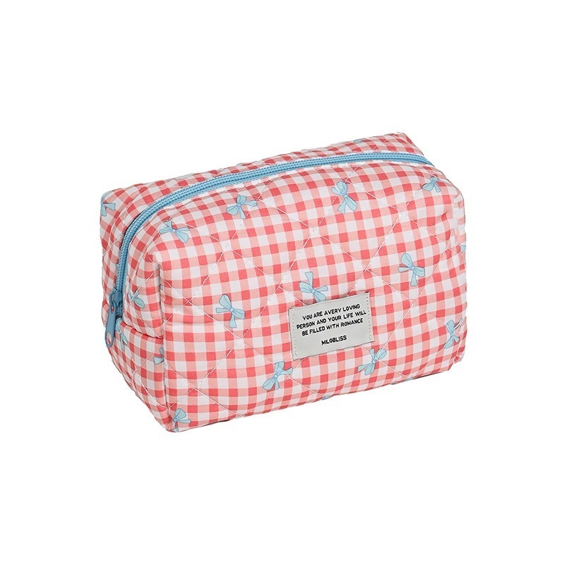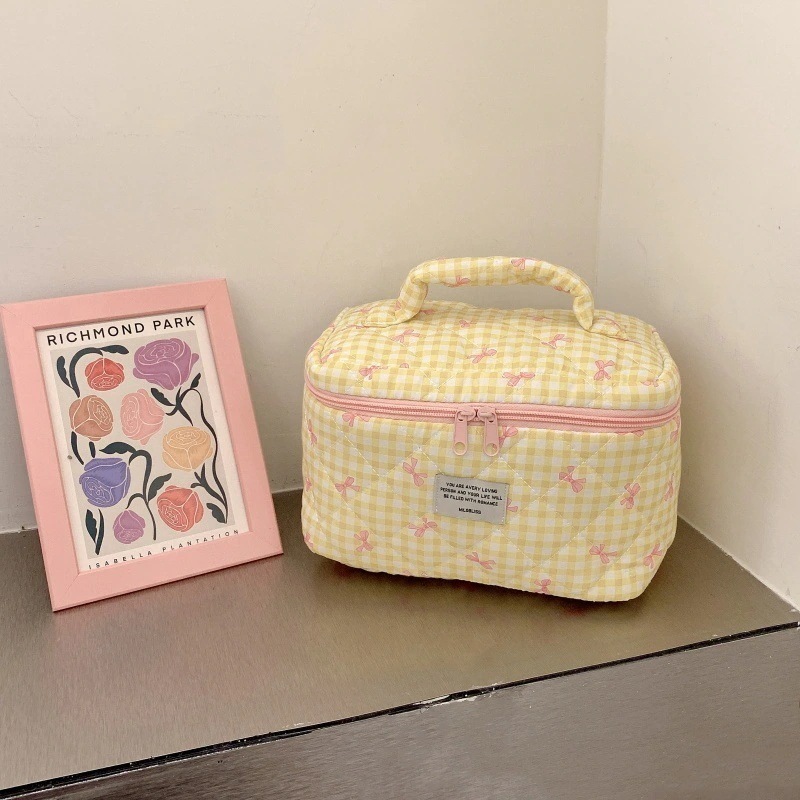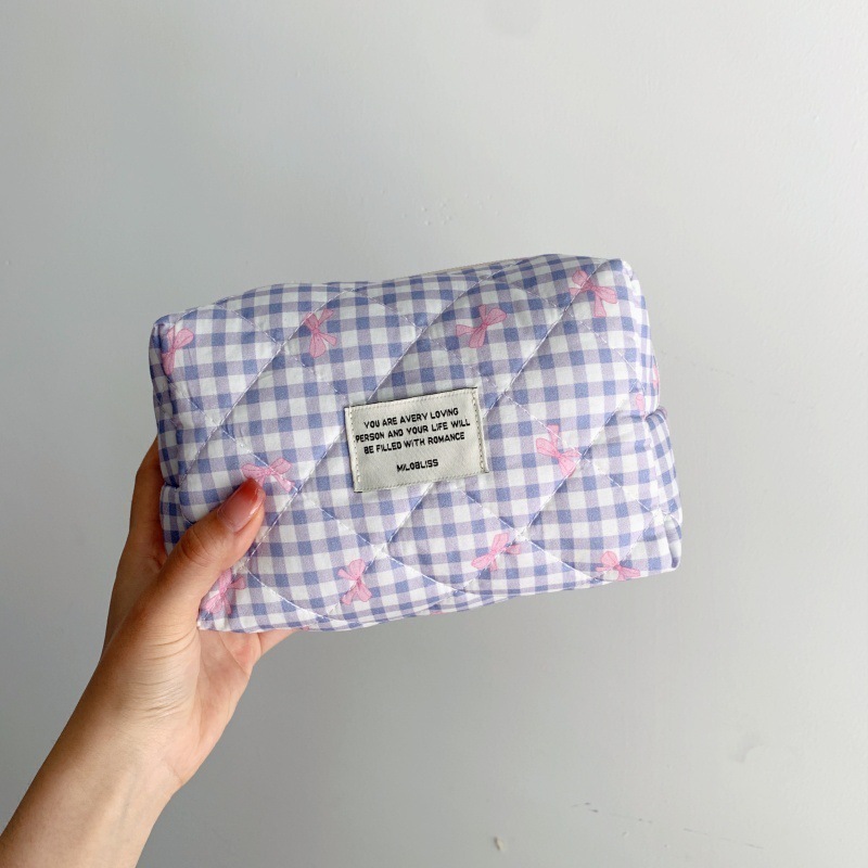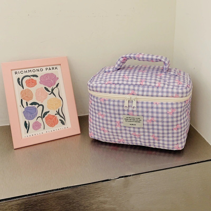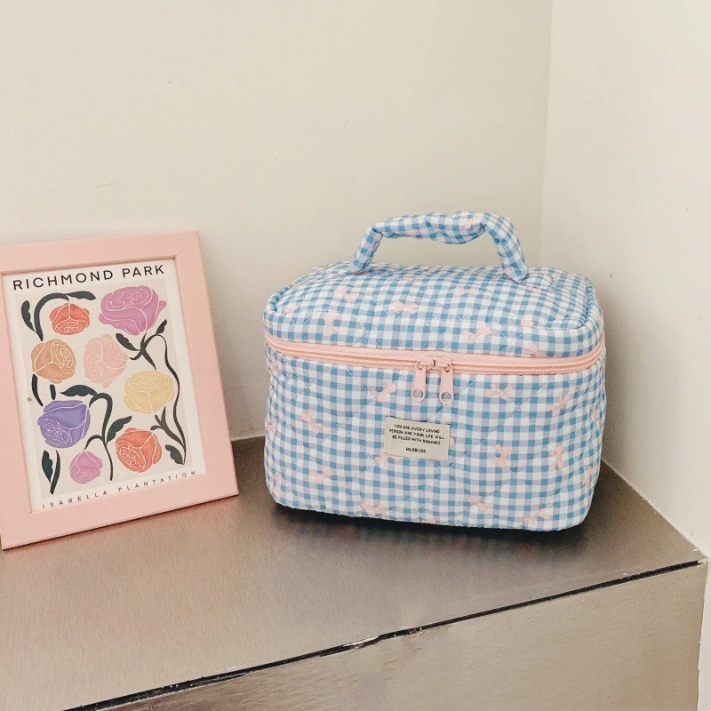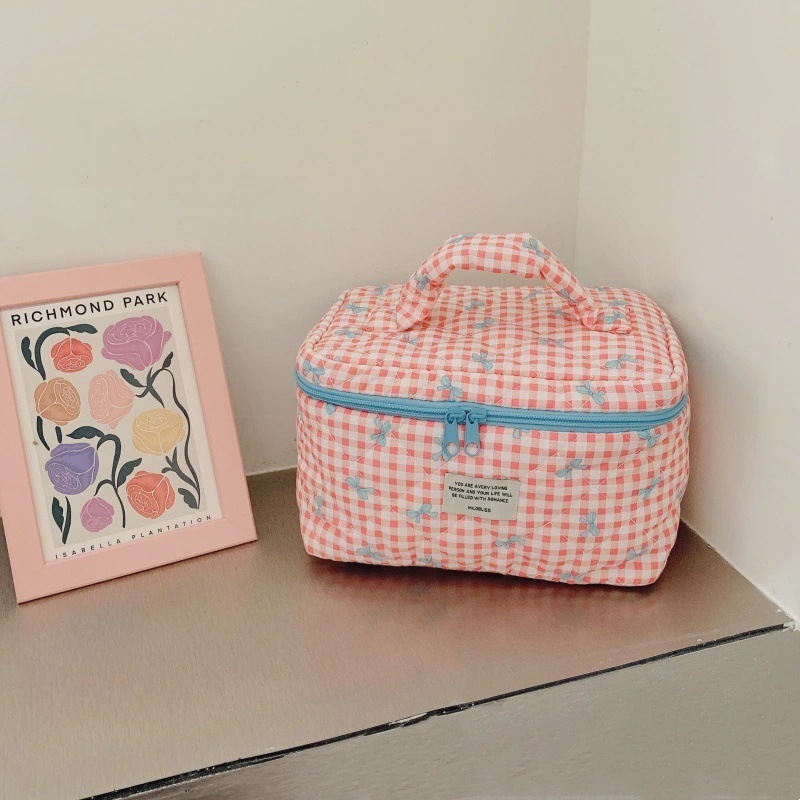 新作キルティングチェック柄化粧ポーチ 大容量かわいい高デザイン収納バッグ 1