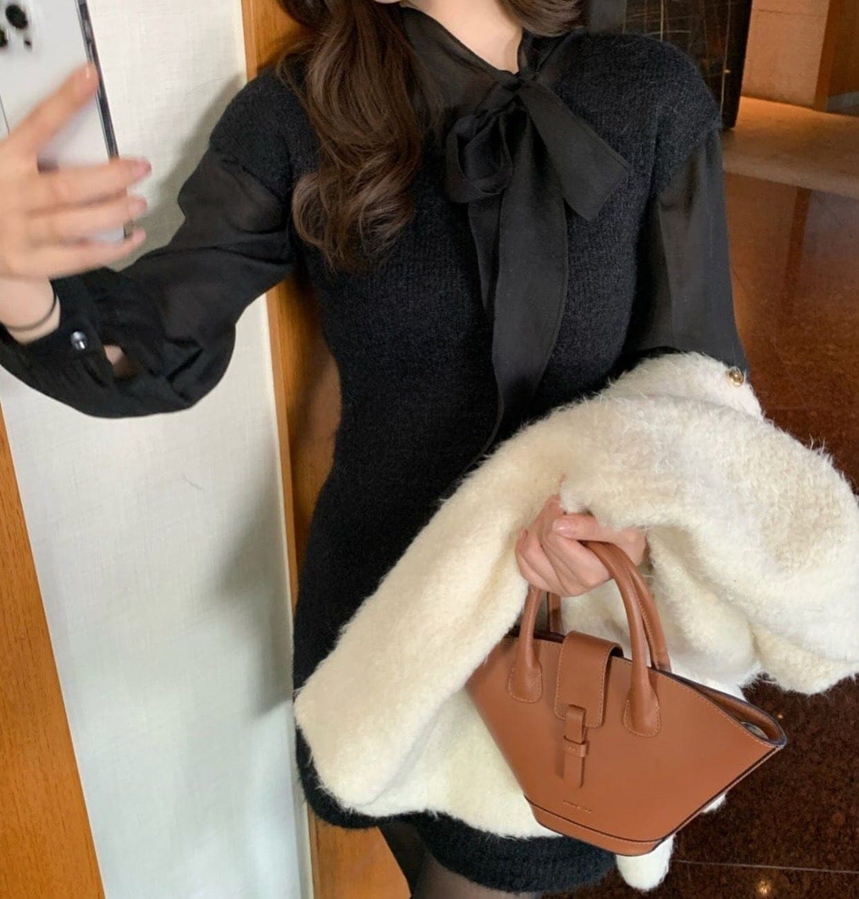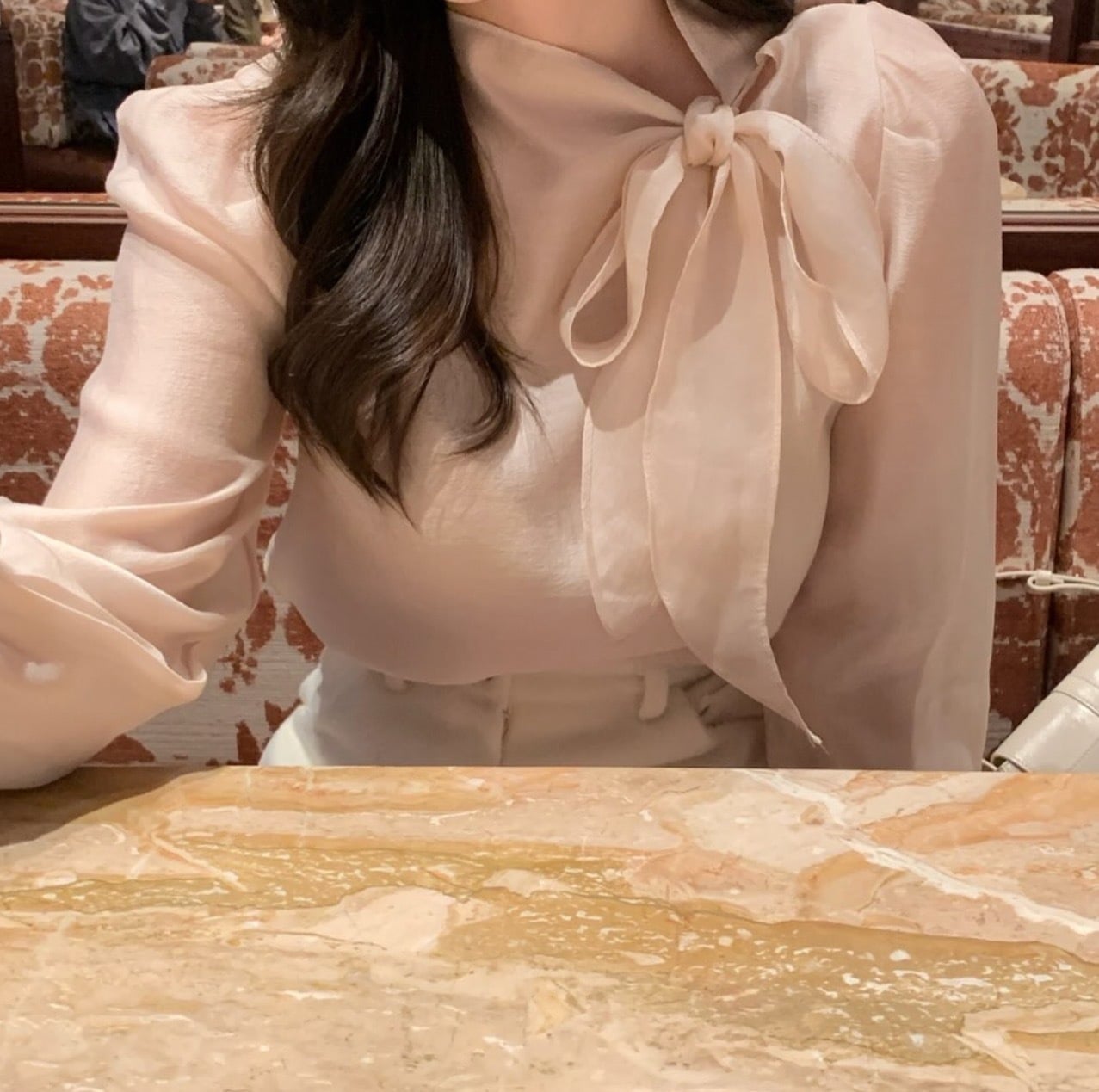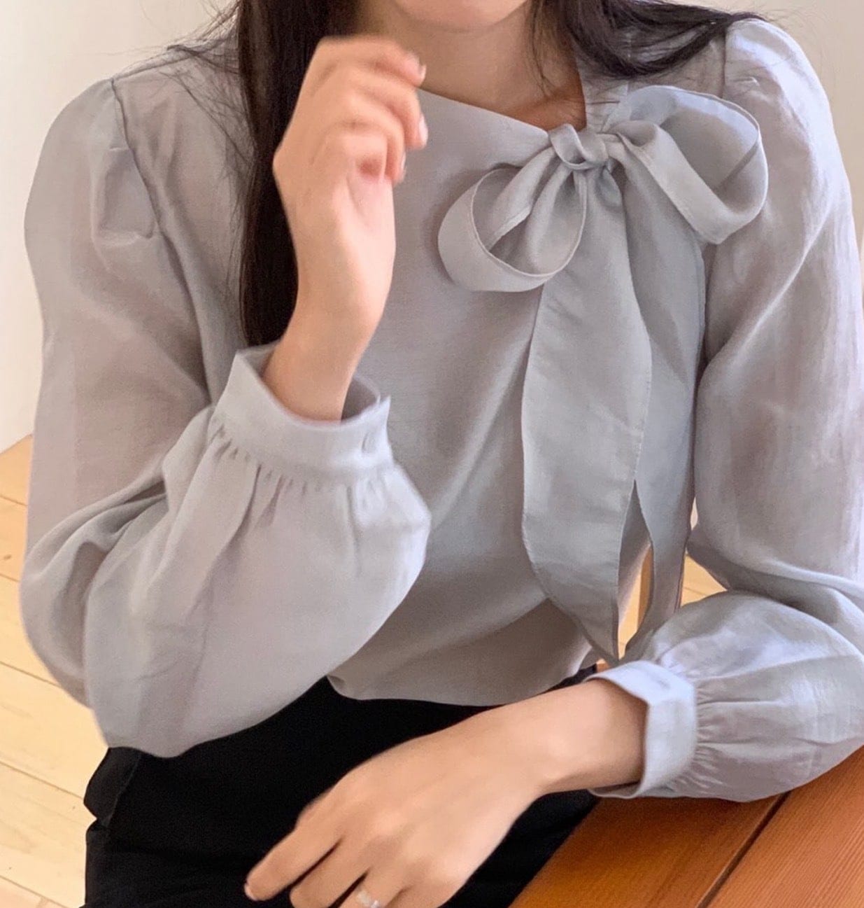 【3日出荷】シャツ 韓国風 ブラウス リボンタイ 光沢感 スリム ランタンスリーブ レイヤード 春服 レディース 長袖tシャツ レディース 母の日