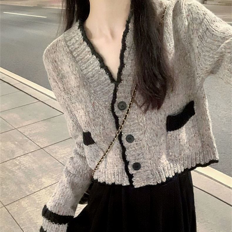 小香風 Vネック ニットカーディガン レディース おしゃれ 長袖ニット 韓国 ゆったり ショート丈 セーター アウター