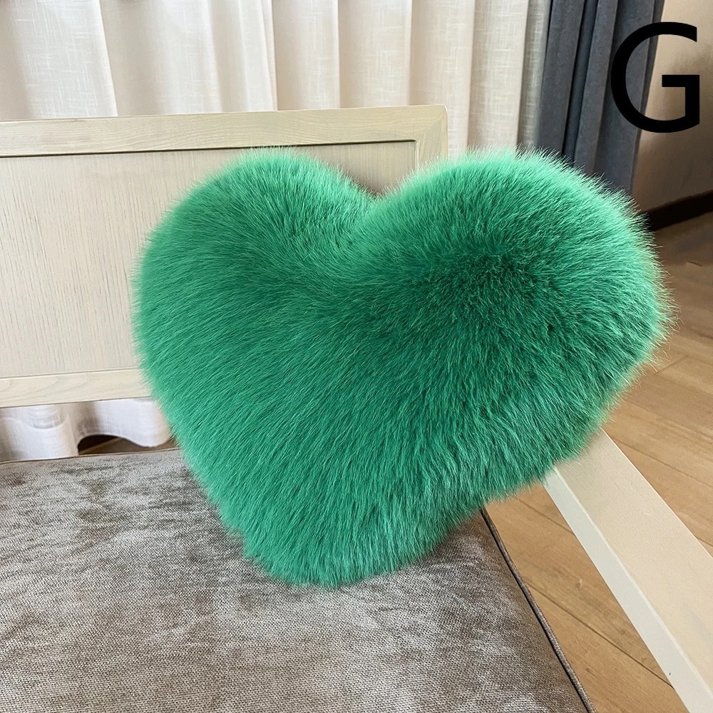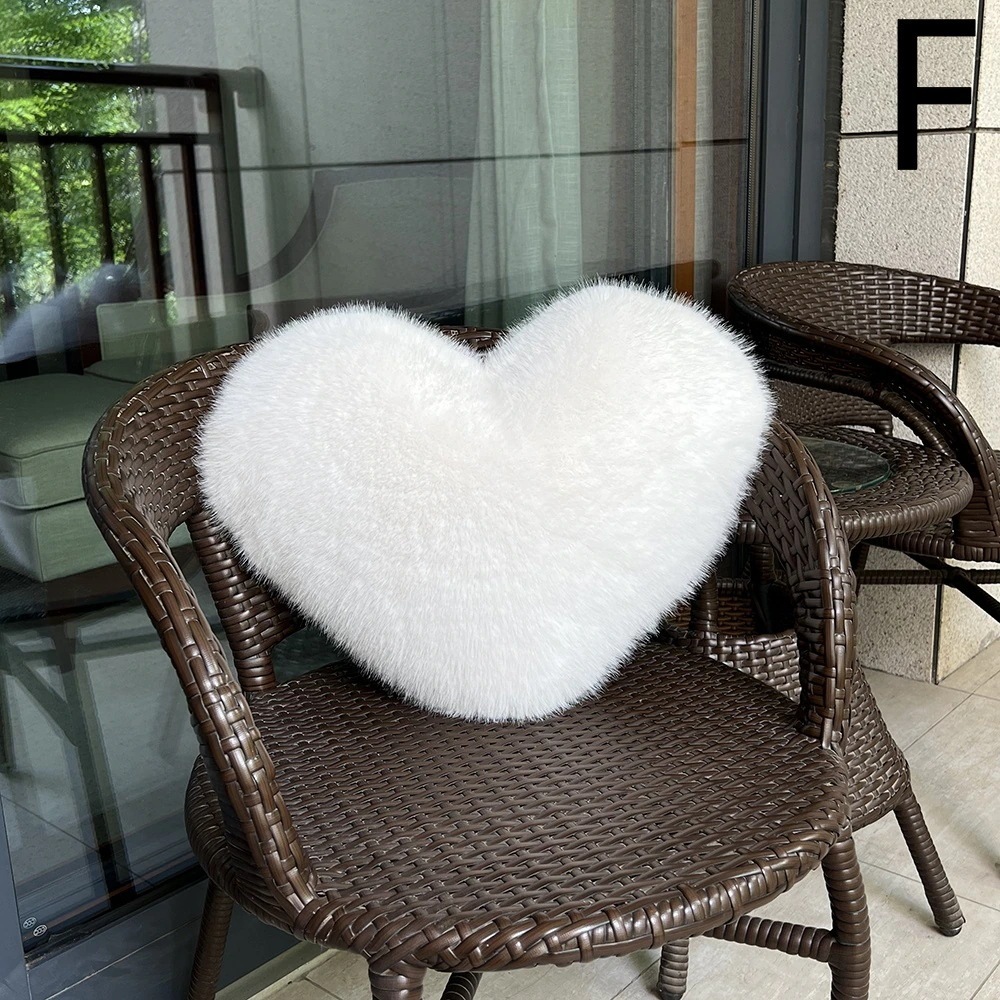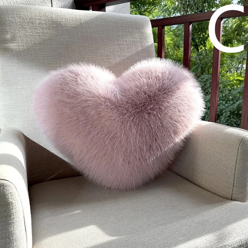 ベージュ ハート型抱き枕 キツネ毛風 ふわふわ かわいい ぬいぐるみ ソファクッション リビング 誕生日プレゼント
