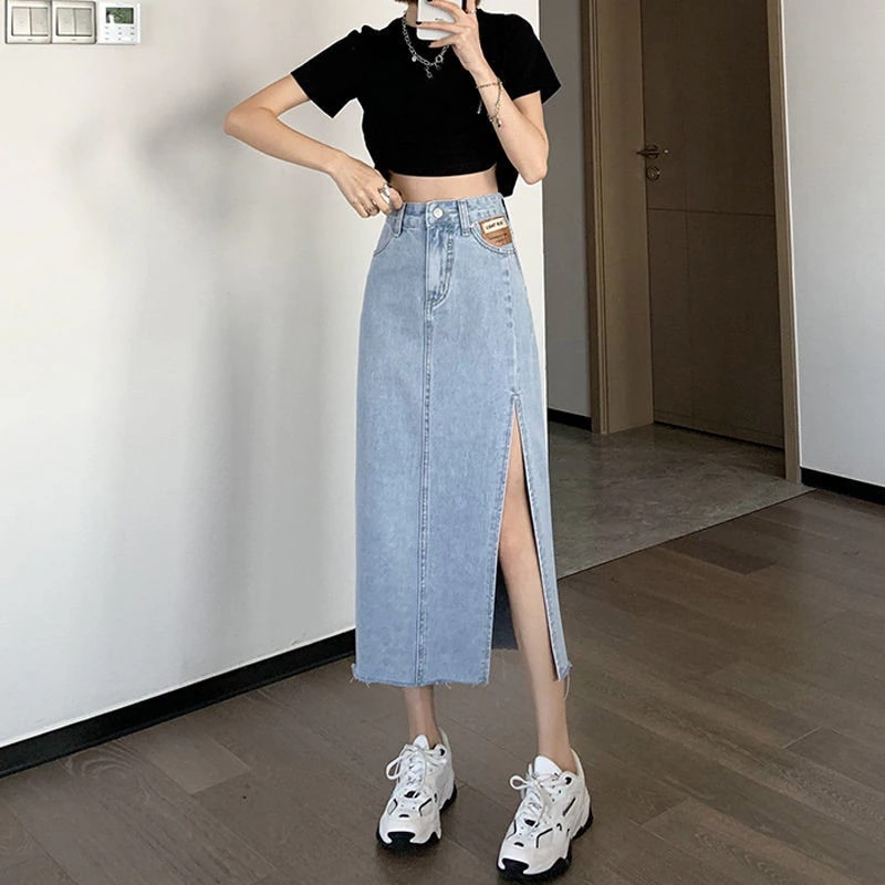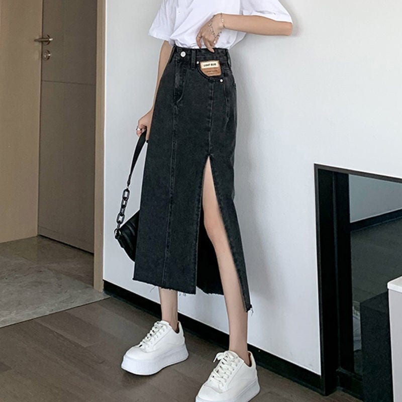 2026年新作 スリット ミディアムスカートレディー新型 腰が高い a字ボトムス タイトスカート2色