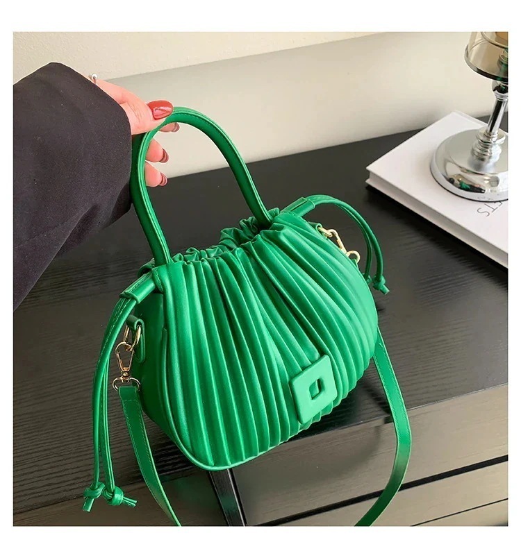 【3日出荷】デザインショルダー斜めがけバッグ プリーツハンドミニバッグ ドローコードバケツバッグ トートバッグ