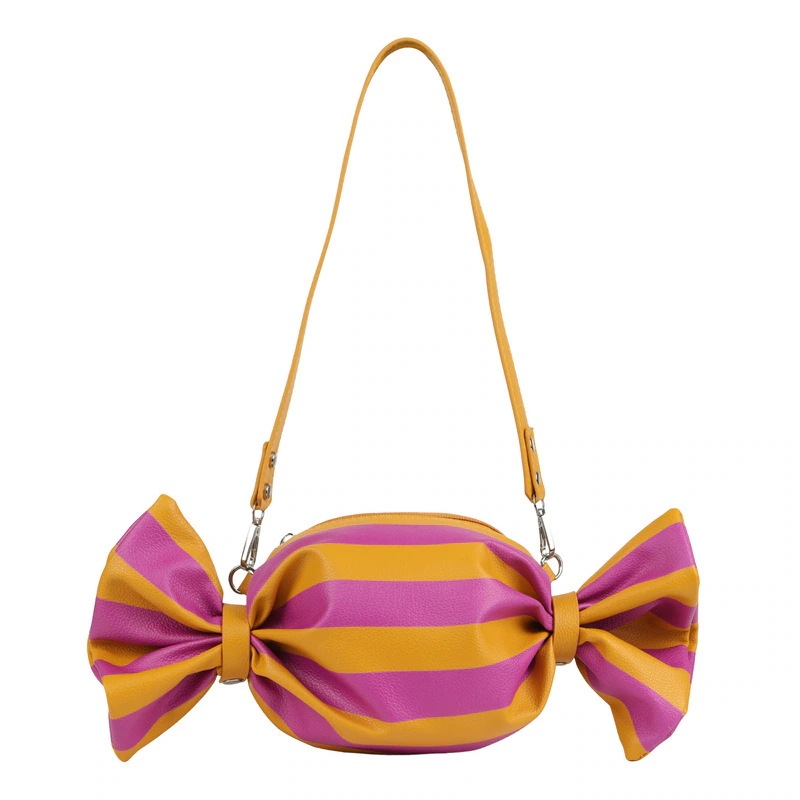 キャンディ型デザインバッグ ボーダーチェック柄 ショルダー斜めがけ レトロ変形バッグ トートバッグ